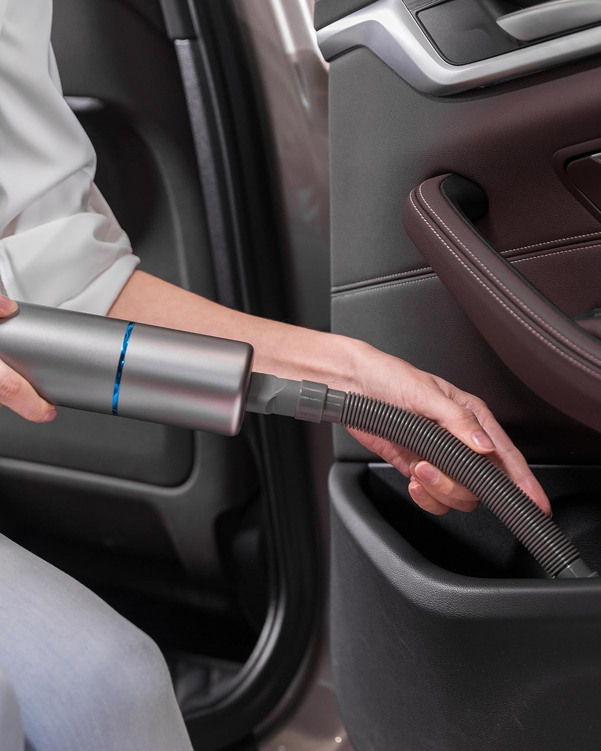 • LONG BATTERY LIFE&CHARGING ANYWHERE: Charge in different scenarios with a USB-C cable, like at home or car. The small vacuum can deliver up to 20 minutes of runtime.