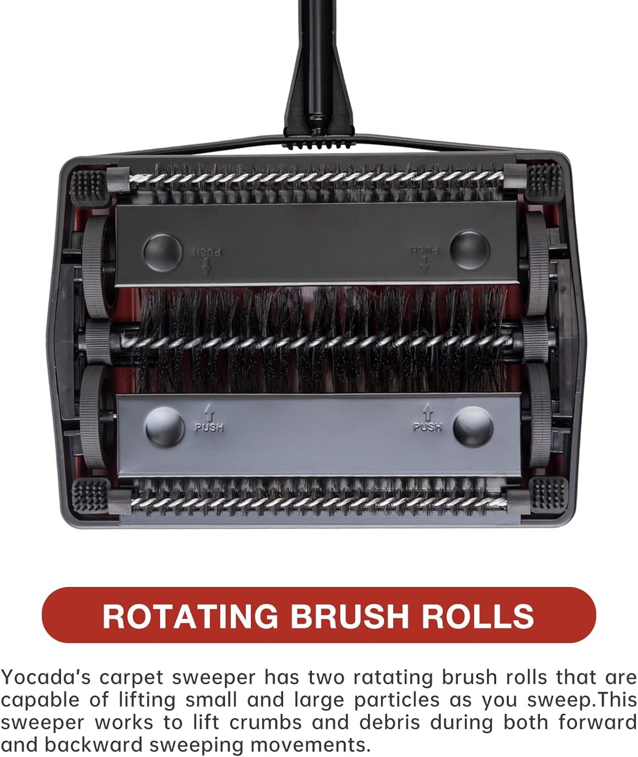 Yocada Carpet Sweeper Cleaner for Home Office Low Carpets Rugs Undercoat Carpets Pet Hair Dust Scraps Paper Small Rubbish Cleaning with a Brush Dark Red