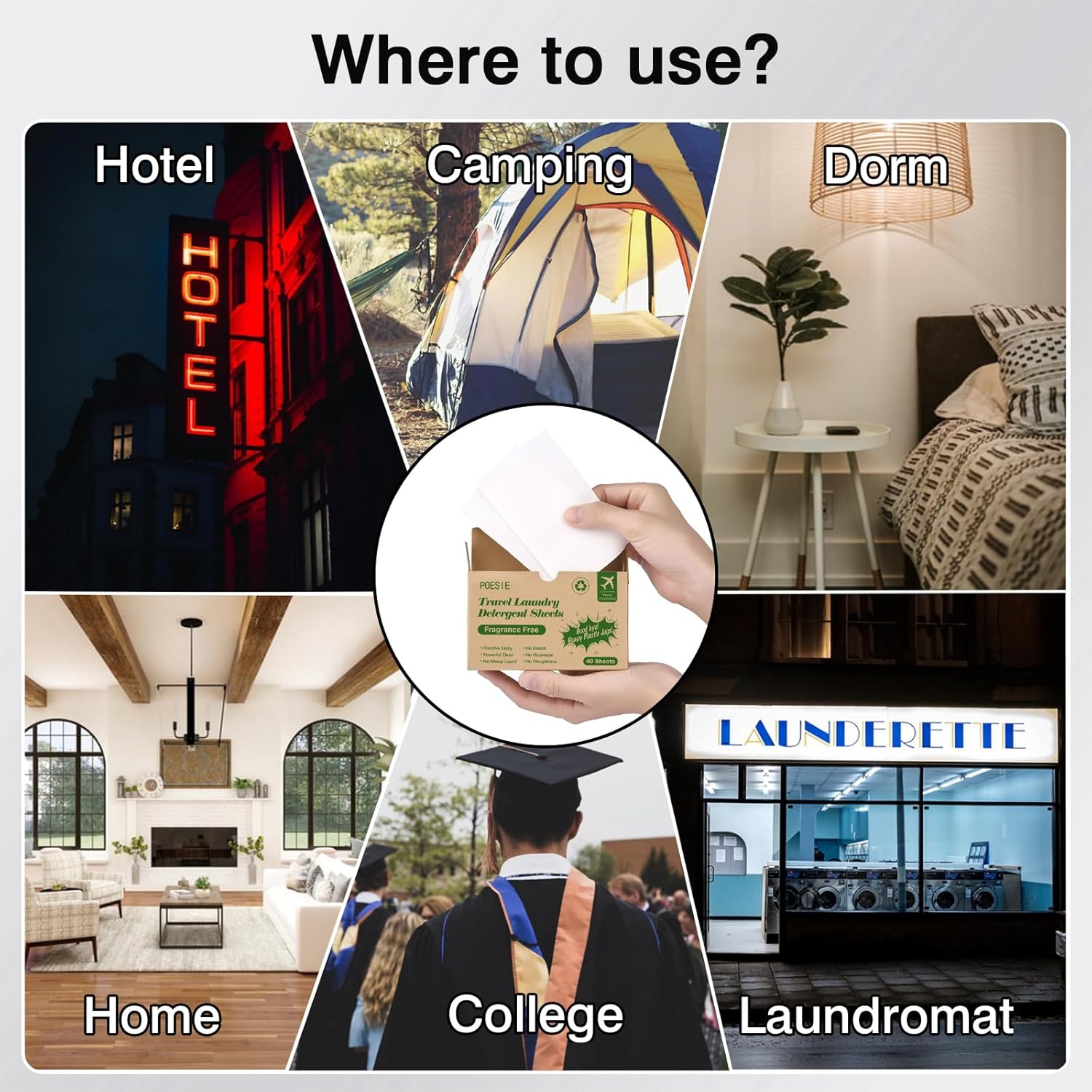 • Usage - Convenient portable little package design No harsh chemical laundry strips, laundry on the go essential for your travel, camping trip, dorm life, RV road trip, laundromat, college laundry life. Small package, great help for your laundry routine