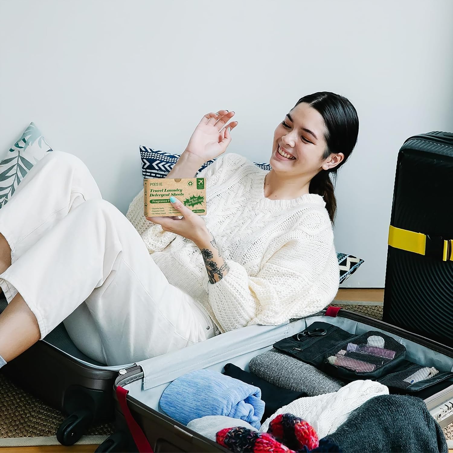 Poesie Laundry Detergent Sheets for Travel Portable Liquidless Cloth Washing Sheets Laundry Strips 3 Box per Pack Total 120 Count Fragrance Free