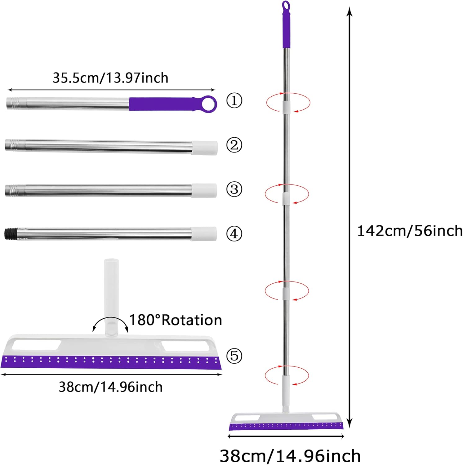 Magic Broom Multifunction Silicone Floor Squeegee, Air Broom for Floor with 56" Long Handle, 4-in-1 Rubber Sweeper for Dirt, Liquids, Pet Hair, Tile Hardwood Floors, Carpet, Living Room (Purple)