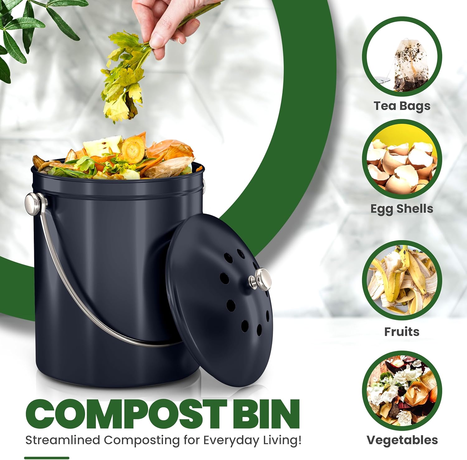 • This compost bin having capacity of 1.3 gallon is manufactured with stainless steel for optimal longevity and durability that won't scratch, crack or chip