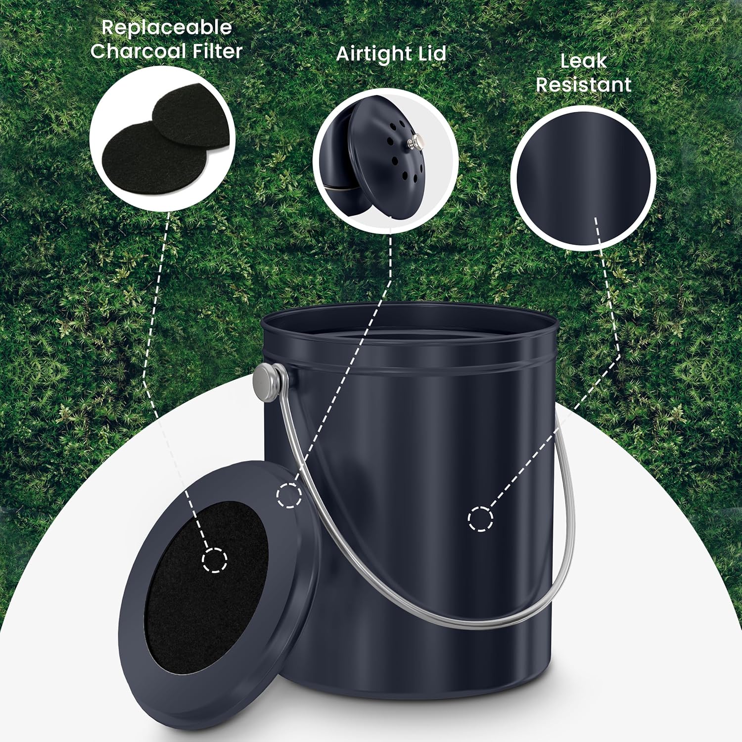 • Sturdy, stylish and sleek design complements any decor so that this kitchen compost bin can sit conveniently on your counter-top or wherever you need it