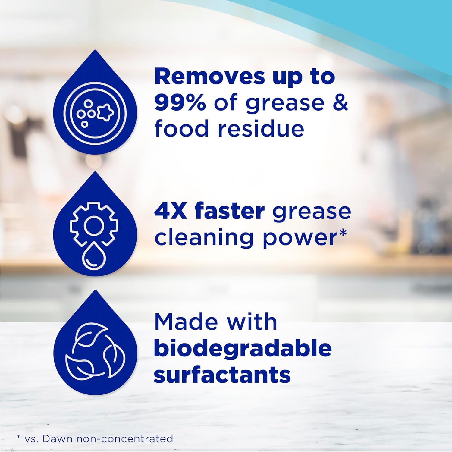 • 1. POWERFUL CLEANING: Dawn Ultra's powerful formula helps you get through more dishes with less dishwashing liquid (*vs. Dawn Non-Concentrated), making it a powerful dish soap liquid