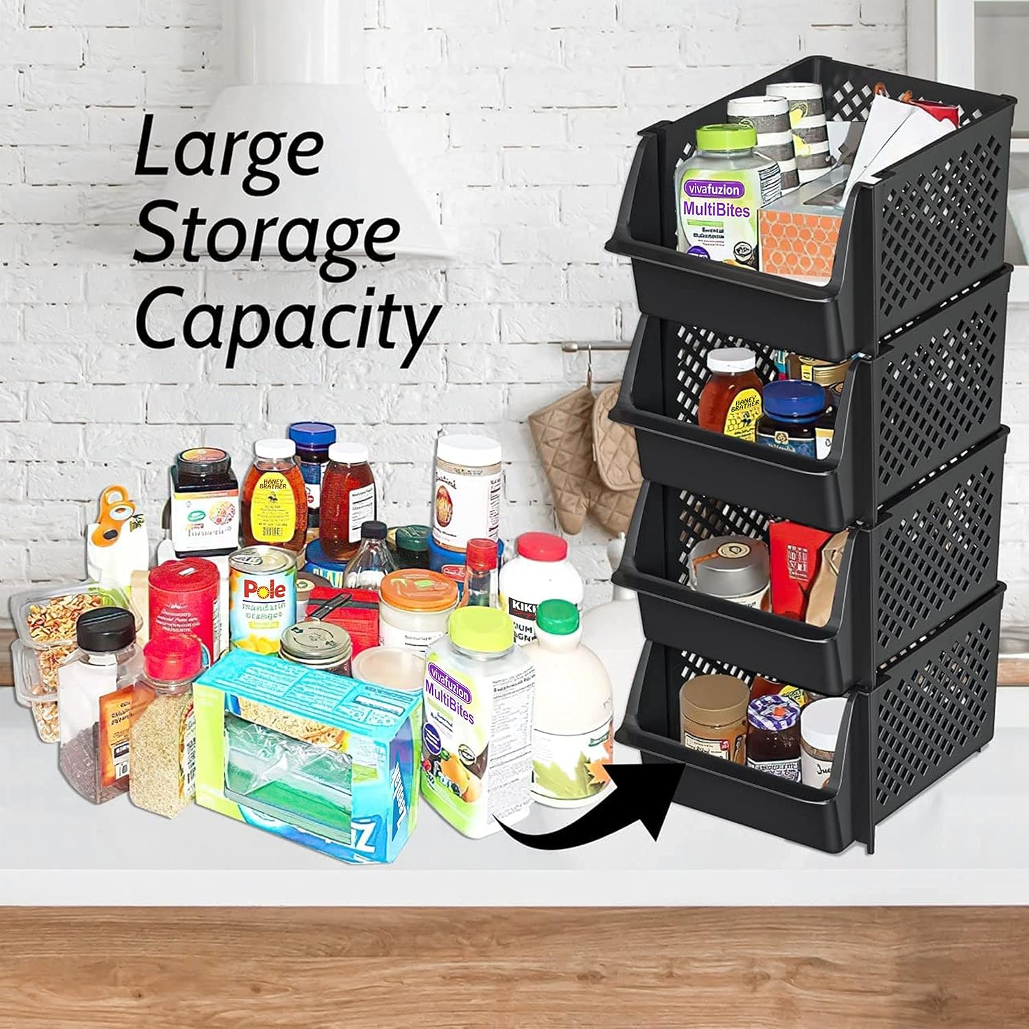 Skywin TidyFriend Plastic Stackable Storage Bins for Pantry, 24 Pack Stackable Bins for Organizing Food, Kitchen, and Bathroom Essentials (Black)
