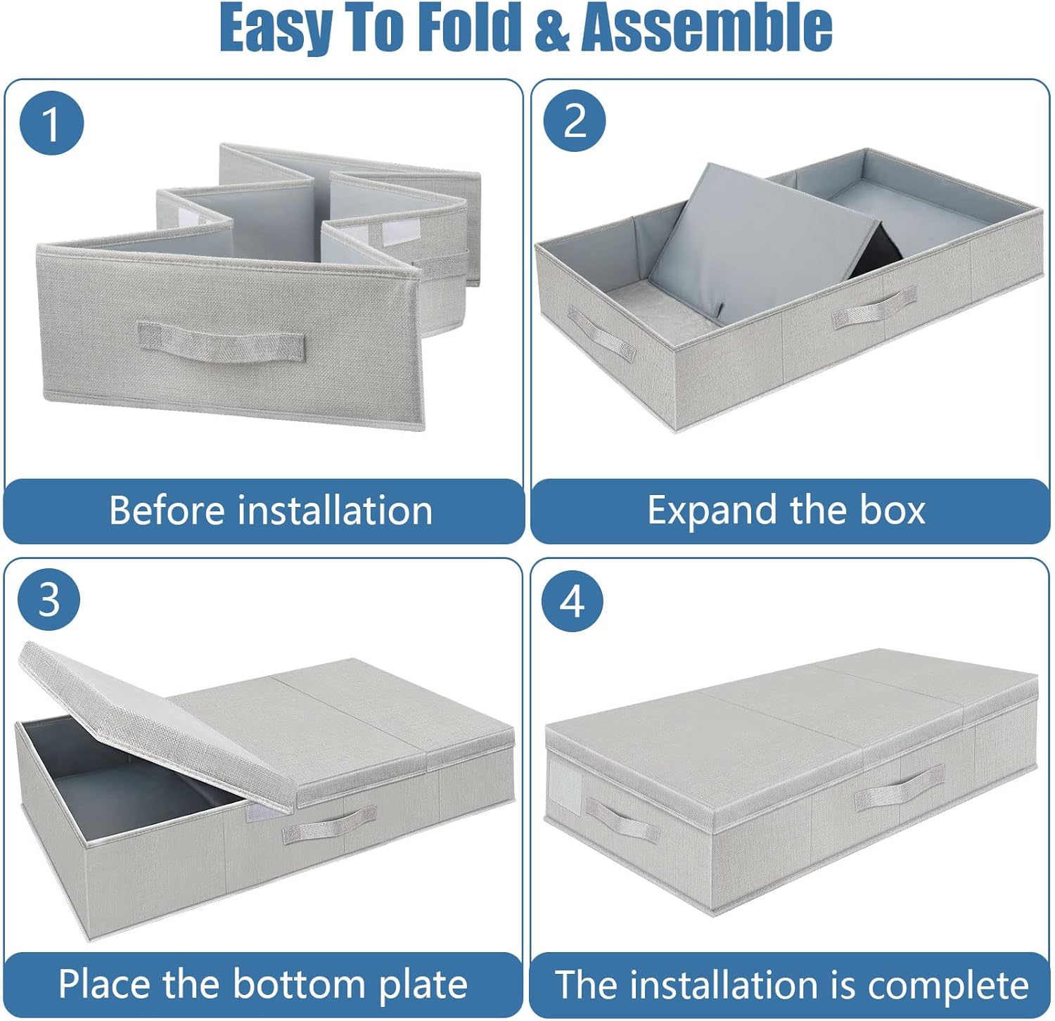 • Durable Material: The under-bed storage box is made of breathable linen fabric on the outside and made of Oxford cloth on the inside. 3 sided Reinforced handles make it easy to pull them out from under the bed.