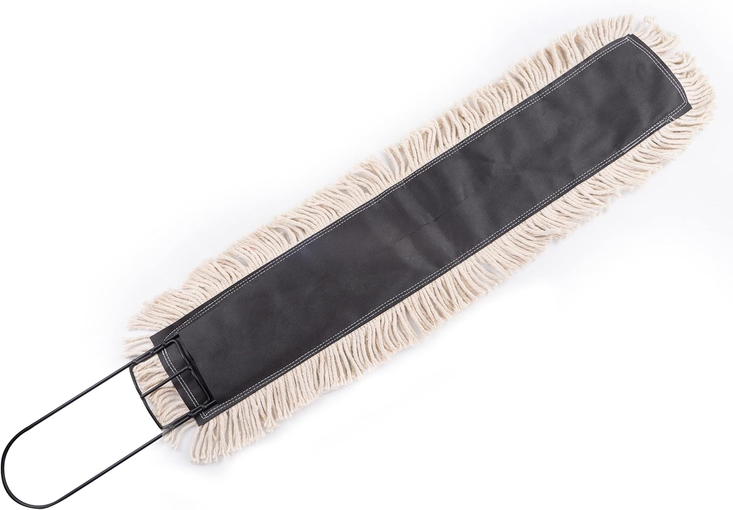 • 5" x 36", fit all standard 36" janitorial mop handle and wire frame. * Note: Mop handle is sold separately* Durable black top with reinforced binding along the keyhole opening to prevent raveling or fraying.