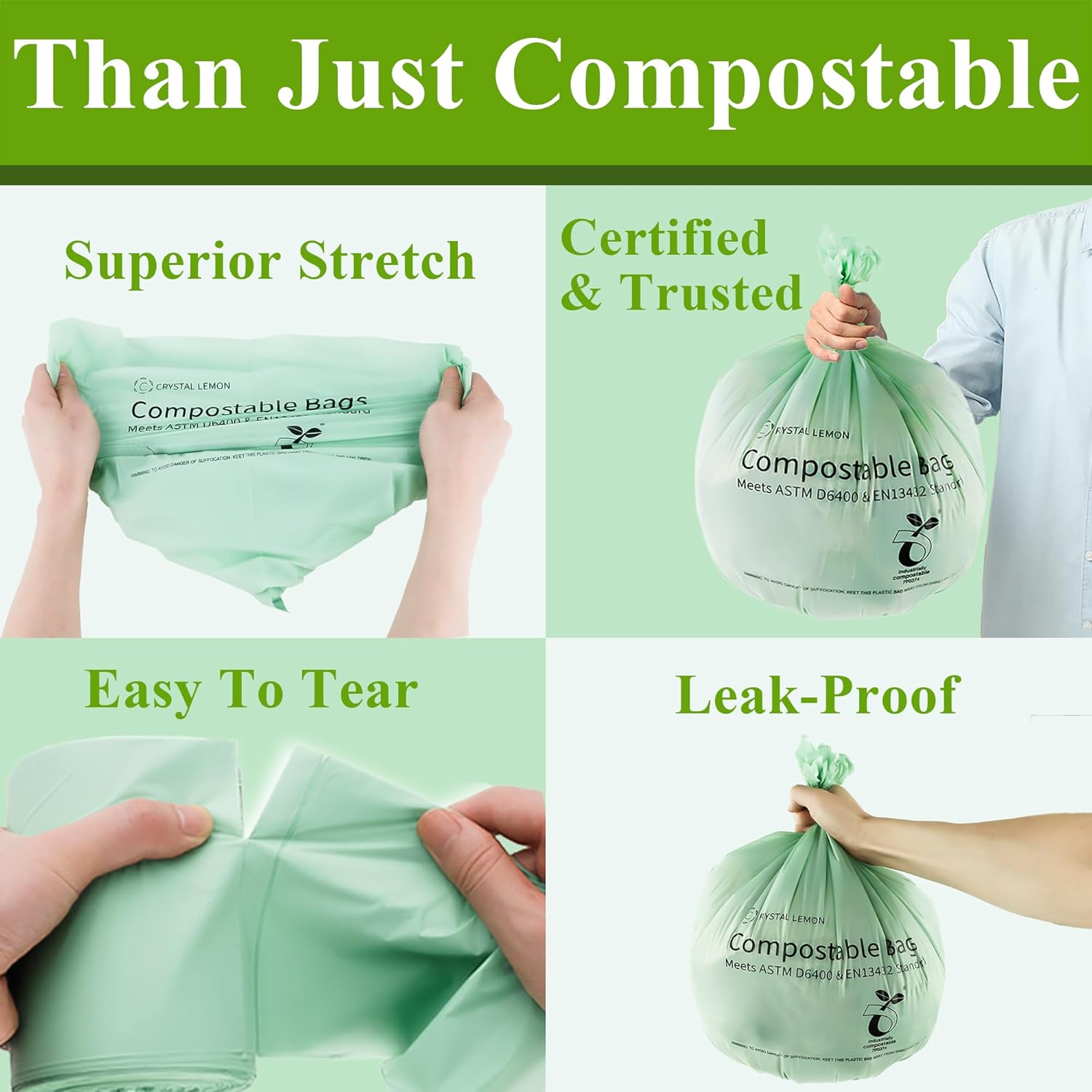 - Green and Eco-Friendly Material –– Crafted from a blend of PLA (polylactic acid) and PBAT (polybutylene adipate terephthalate), our biodegradable trash bags ensure enhanced composability. This makes it the perfect compost bag to break down organic materials into a nutrient-rich soil and reduce plastic waste. your Go green with our eco friendly 6 gallon trash bags.
