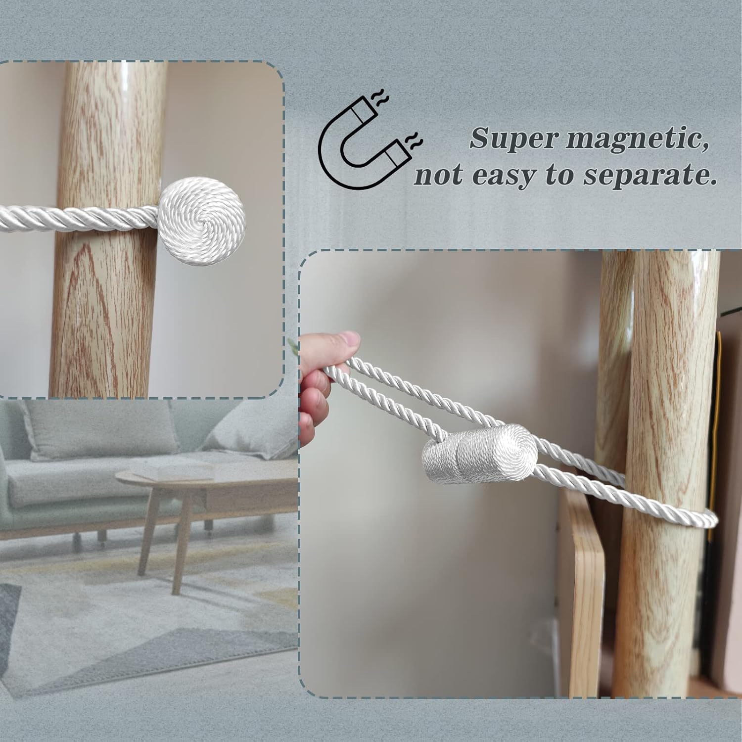 • [Upgrade Powerful Magnetic] Our magnetic curtain tiebacks magnets use high-end new imported nickel-plated magnets, with strong corrosion resistance and durability, more magnetic than ordinary magnetic curtain tiebacks, and do not rust and not lose color. The rope of curtain tie adopts upgrade thickened solid polyester yarn, which is not only durable, but also not easy to wear or pilling.