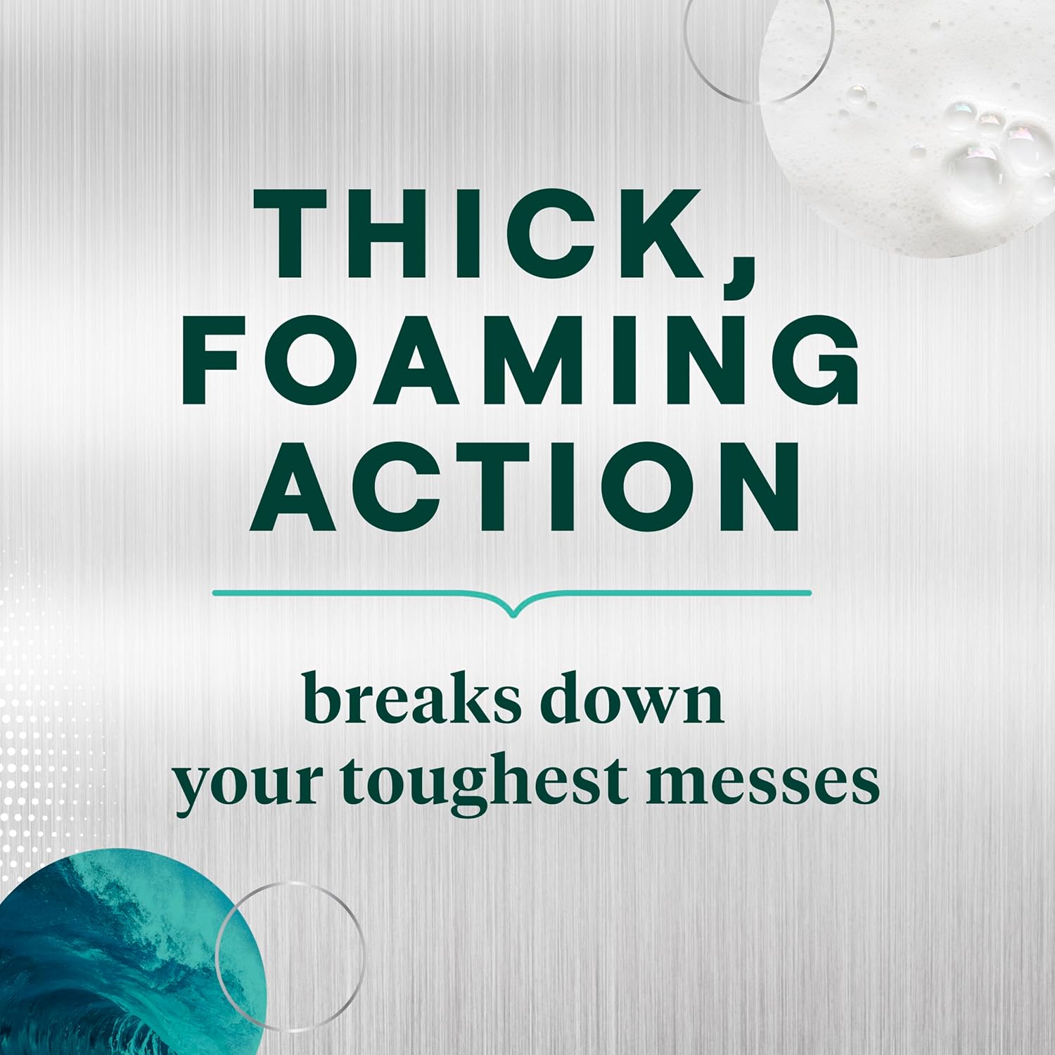 • Dishwashing liquid with a thick foaming action that breaks down the toughest messes, so you don’t have to