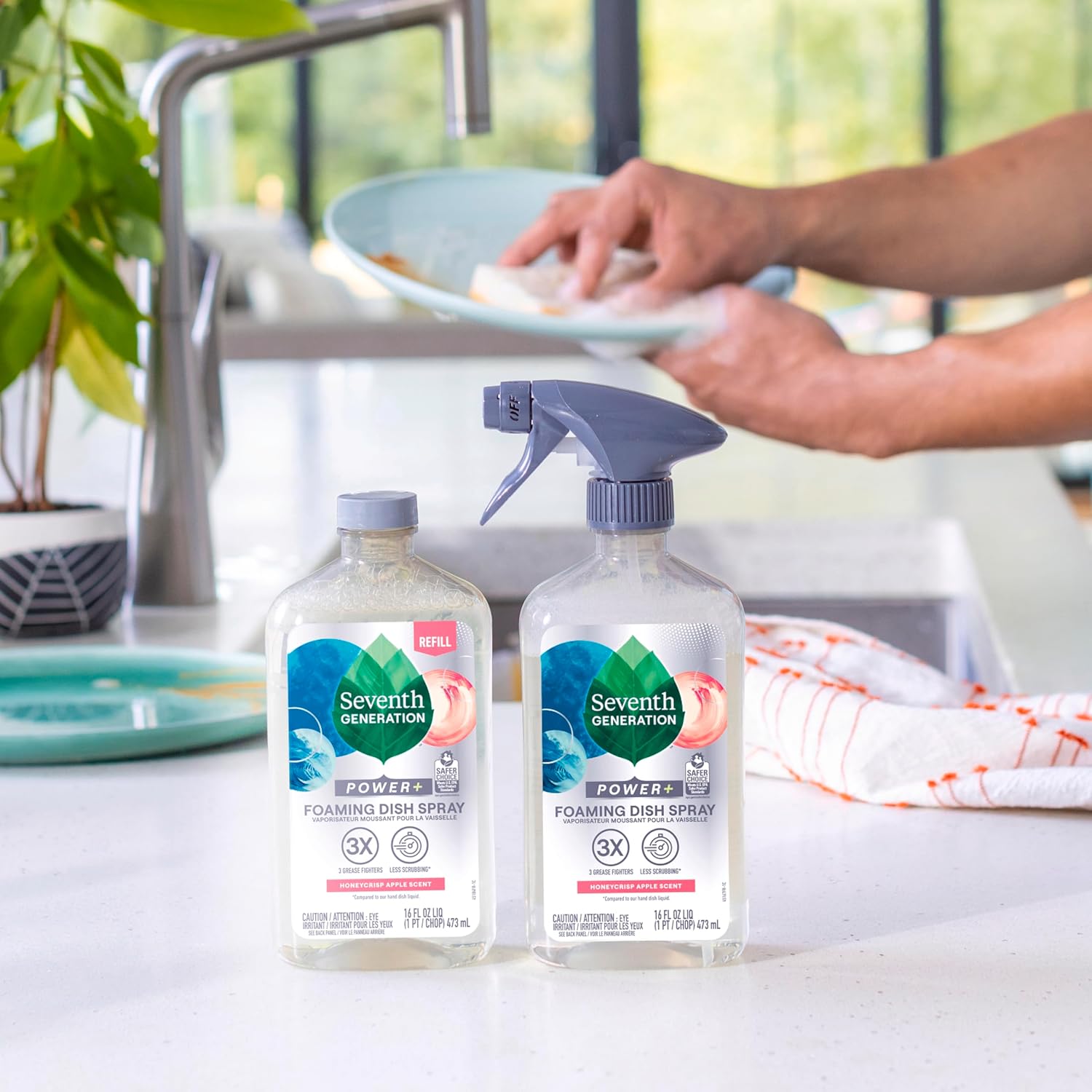Seventh Generation Power+ Foaming Dish Spray Dishwashing soap Honey Crisp Apple Cuts Grease 16 oz