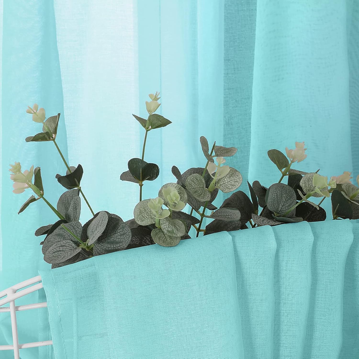 • Light Filtering: The linen look crystal blue sheer curtains can allow the right amount of natural light through to bring your room a hazy and softer vision, keep you away from someone’s glance from outside and provide you some privacy.
