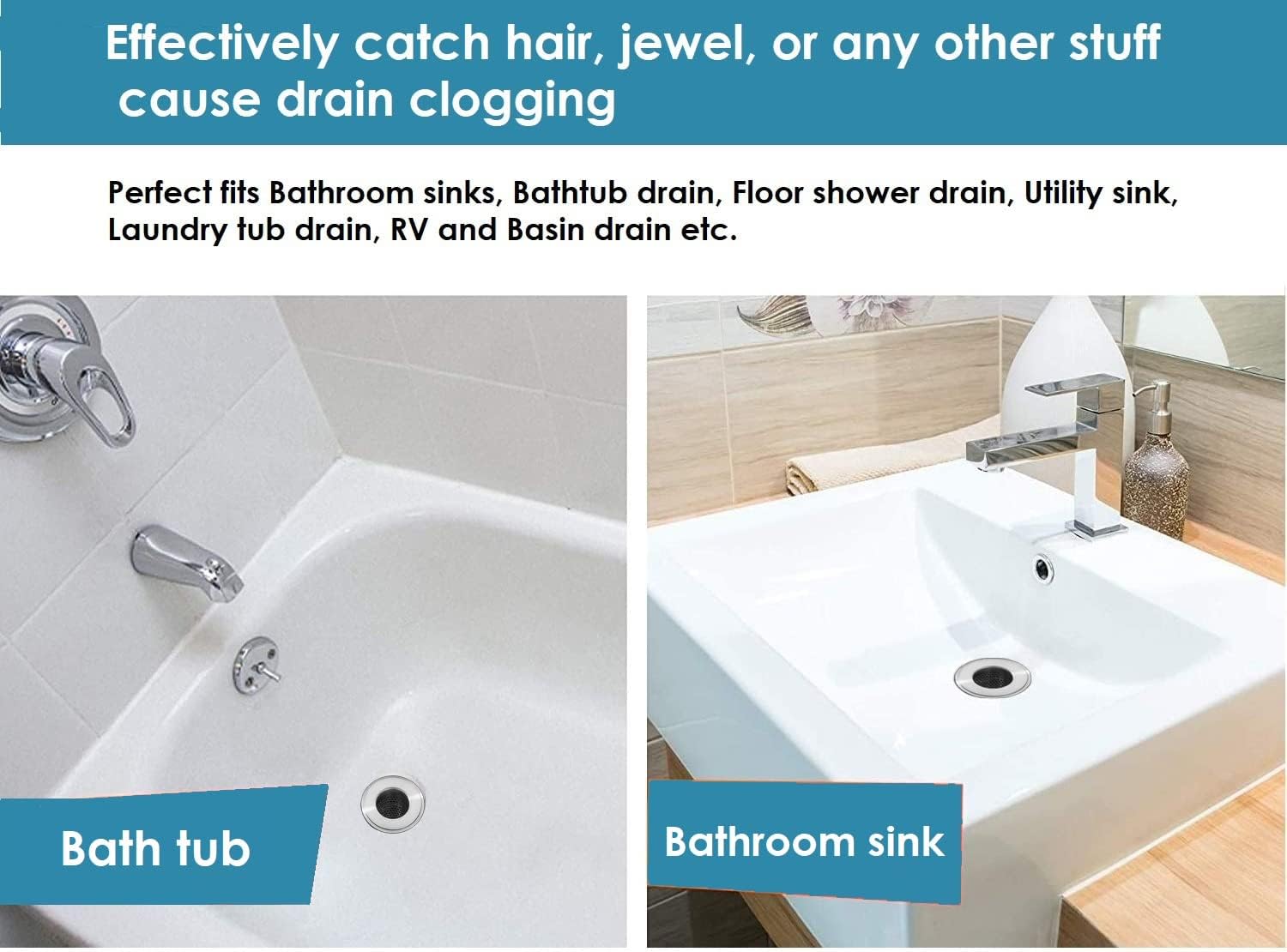 • PREMIUM MATERIAL: Upgraded Drain Hair Catcher are made of high quality 304 stainless steel, reliable, rust free and resistant corrosion. Thick and durable outside rim provides the bathroom drain strainer a secure sitting over the drain. This sink drain strainer presents smooth edge and it will not scratch your hands or damage your sinks.