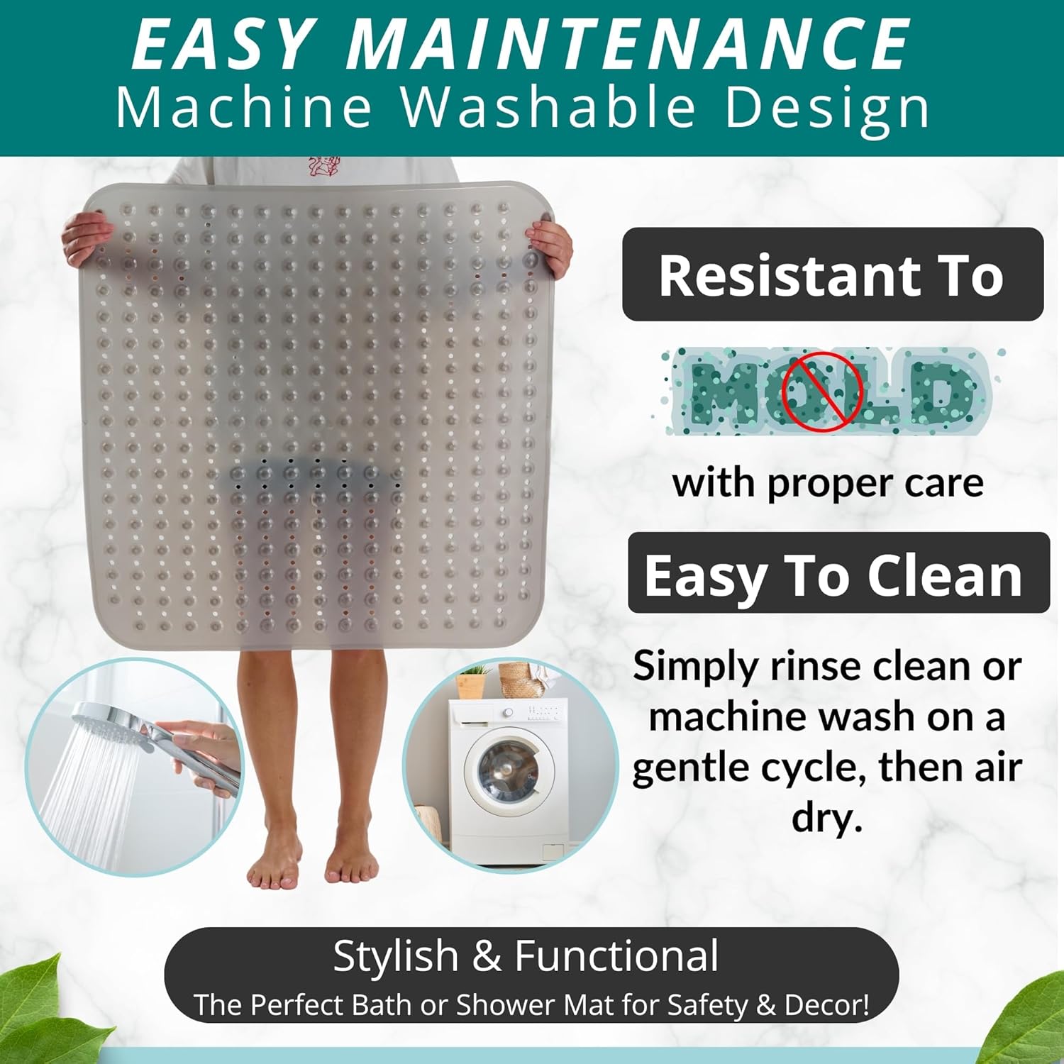 • NON-SLIP MAT enjoy 360-degree protection in your shower; prevent falls with an extra large Square bathroom shower bath mat for larger shower stalls with pliable suction cups for secure sticking capacity to help securely hold the shower mat to shower stall floors for safe anti-slip protection
