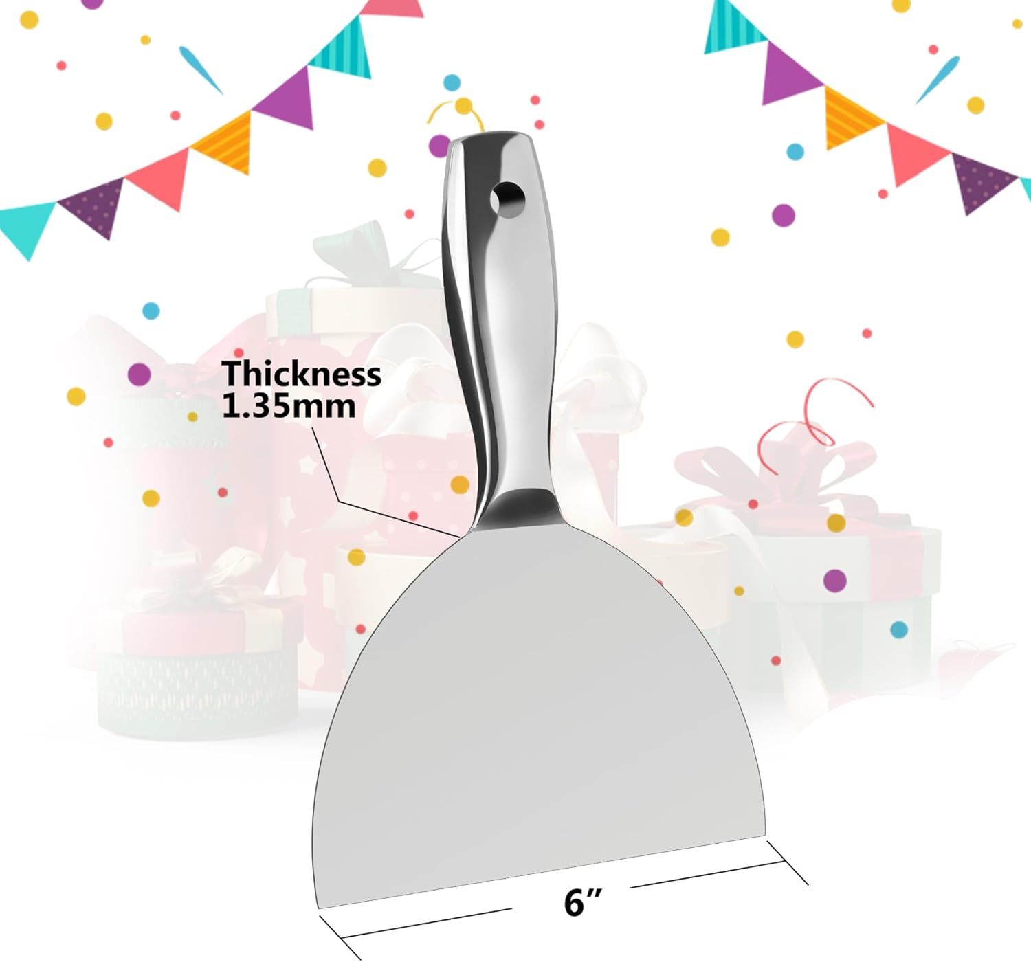 • [ALL STAINLESS STEEL]The putty knives are processed into one piece,that more solid and durable than others.Stainless-steel handle and blade ensure faster application and higher work efficiency