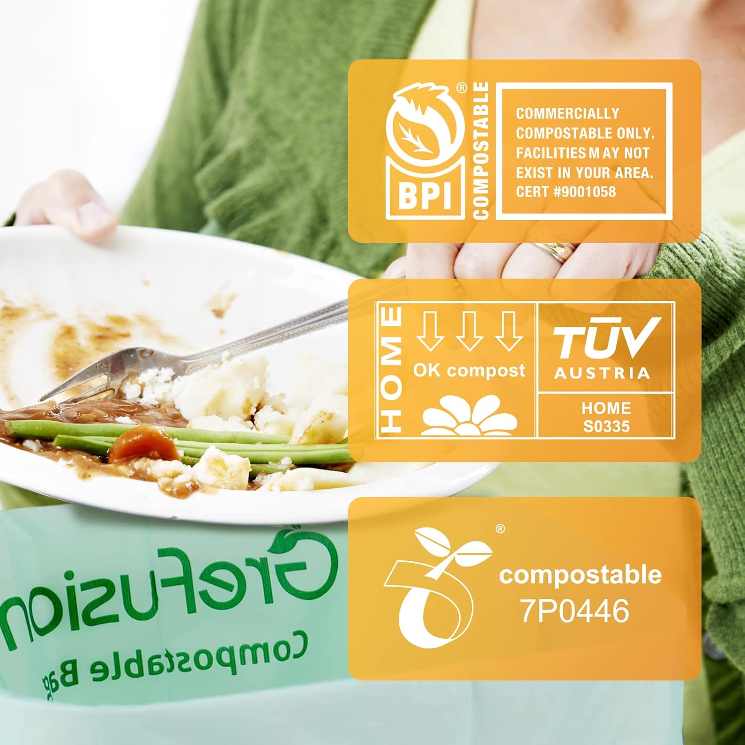 - 【2.6 GALLON COMPOSTABLE BAGS&UPDATE THICKER BOTTOM 】Even liquids gather at the thicker bottom but with no tear . The kitchen trash bags features of sturdy same as regular plastic bags but more ecofriendly than it.If you're tired of cleaning your compost bin every day or using flimsy trash can kitchen bags causing spilling out, Now the Surper Strength GreFusion garbage bags is a great life saver for your Health & Household cleaning working.