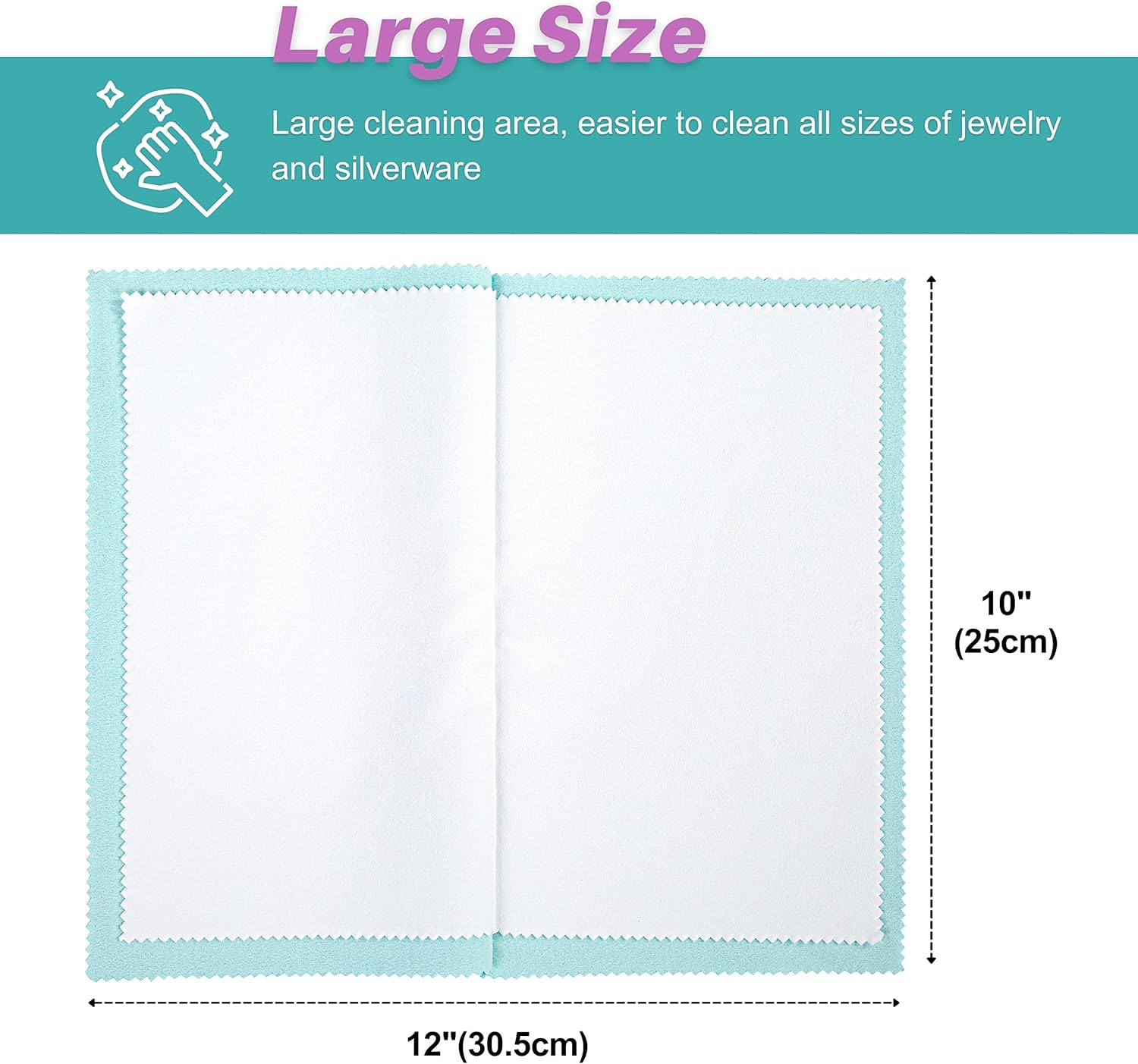 • LARGE SIZE: Each polishing cloth has an unfolded size of 10 inches X 12 inches (25cm X 31.2cm). The large jewelry cleaning cloth is easier to grip and easier to clean silverware and jewelry of different sizes.