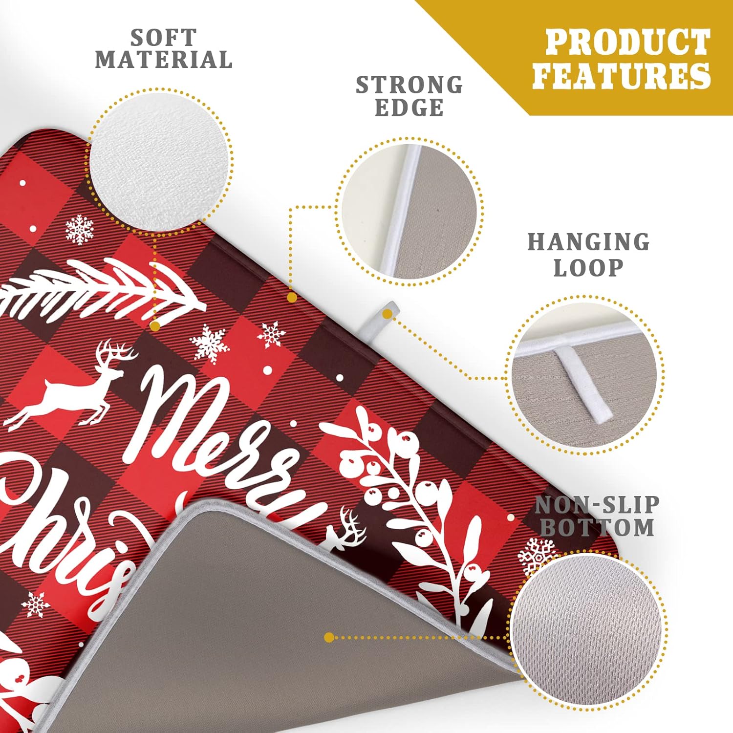 - 【Dish drying mat size】18x24 inches, high quality polyester Merry Christmas dish drying mat. Made of microfiber,super absorbent and fast drying dish drying mat. Absorbent microfiber, in a 3-layer design without sacrificing its softness. Both sides can be used, one with a Cute Christmas moose and Black and red plaid pattern, the other with a gray non-slip bottom. Christmas drying Mat for Coffee Bar Countertops fits most countertops while providing a smart, sharp look.
