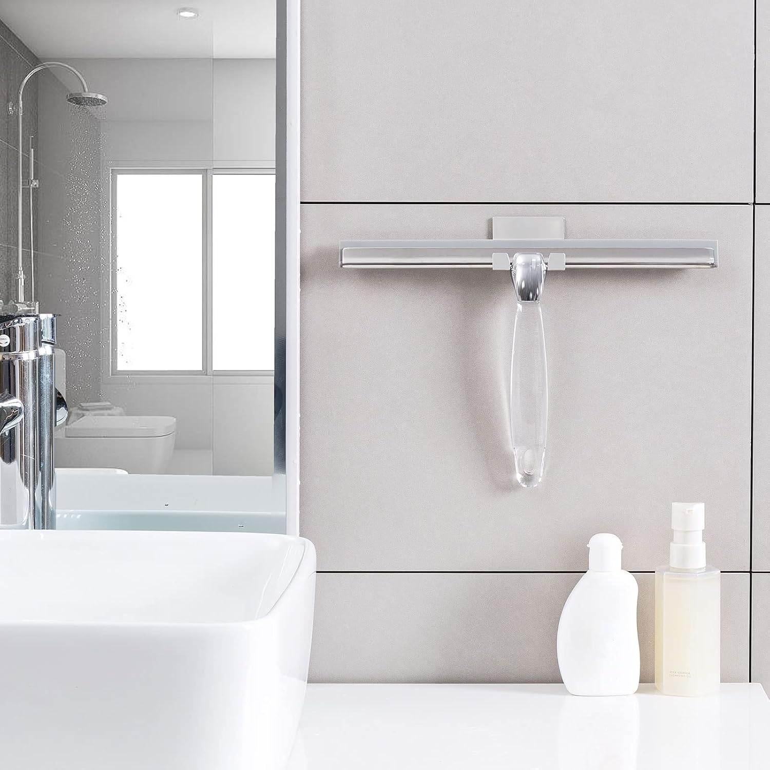 • Adhesive Hook Included: Our small squeegee comes with a powerful adhesive hook that can be attached to any flat and smooth surfaces. It is very convenient for daily use and storage