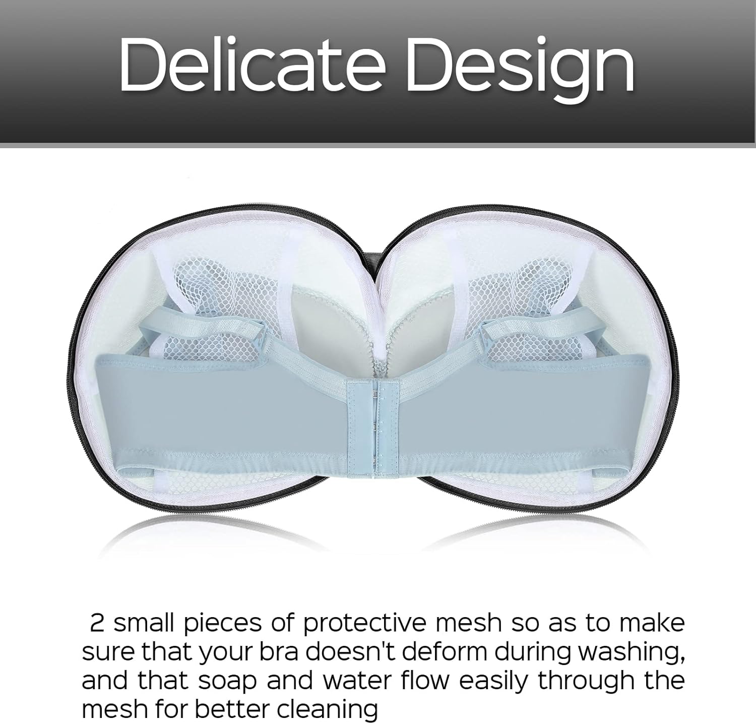 • Mesh design: each delicate laundry bag has 2 small pieces of protective mesh so as to make sure that your bra doesn't deform during washing, and that soap and water flow easily through the mesh for better cleaning