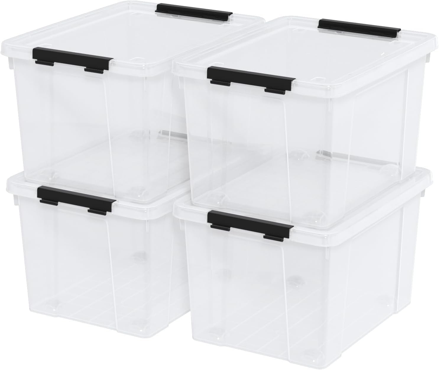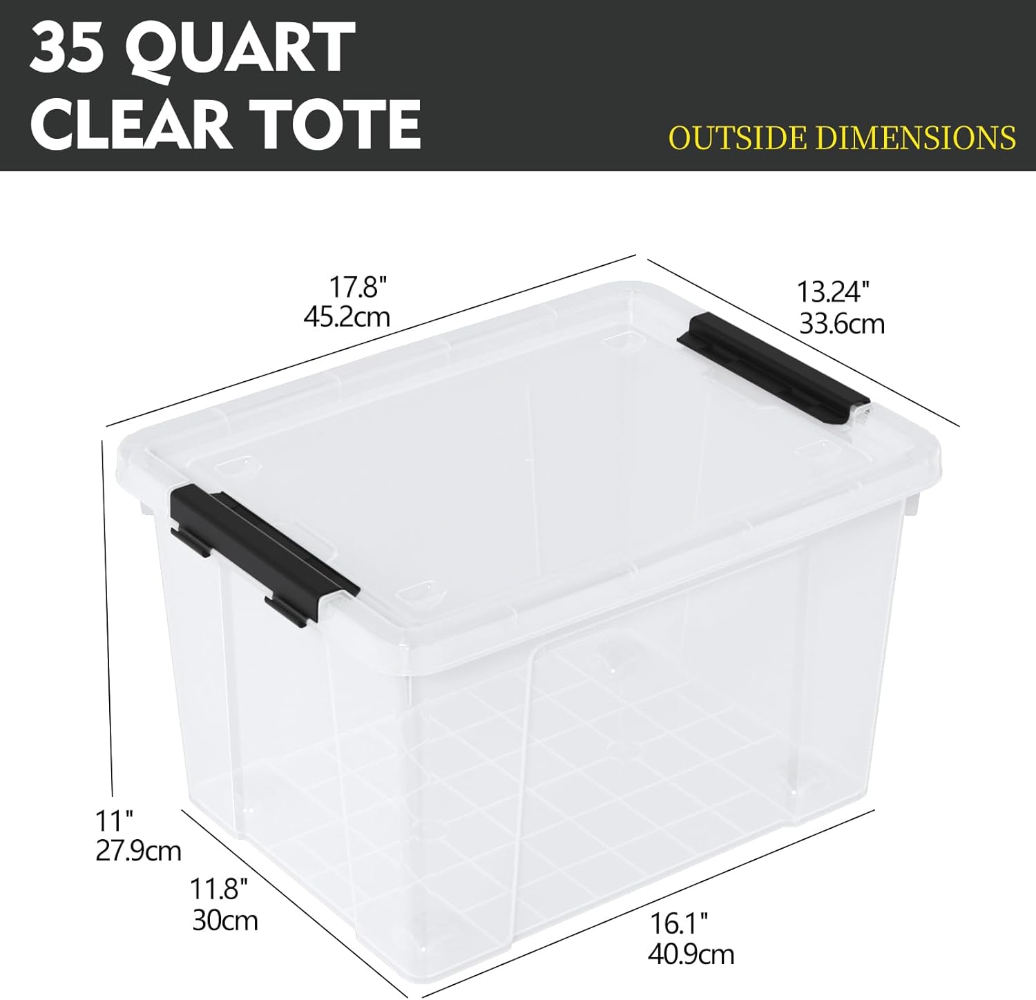 4-Pack Plastic Storage Bins with Lid, Latching Stackable Utility Tote, 35 Quart, Clear