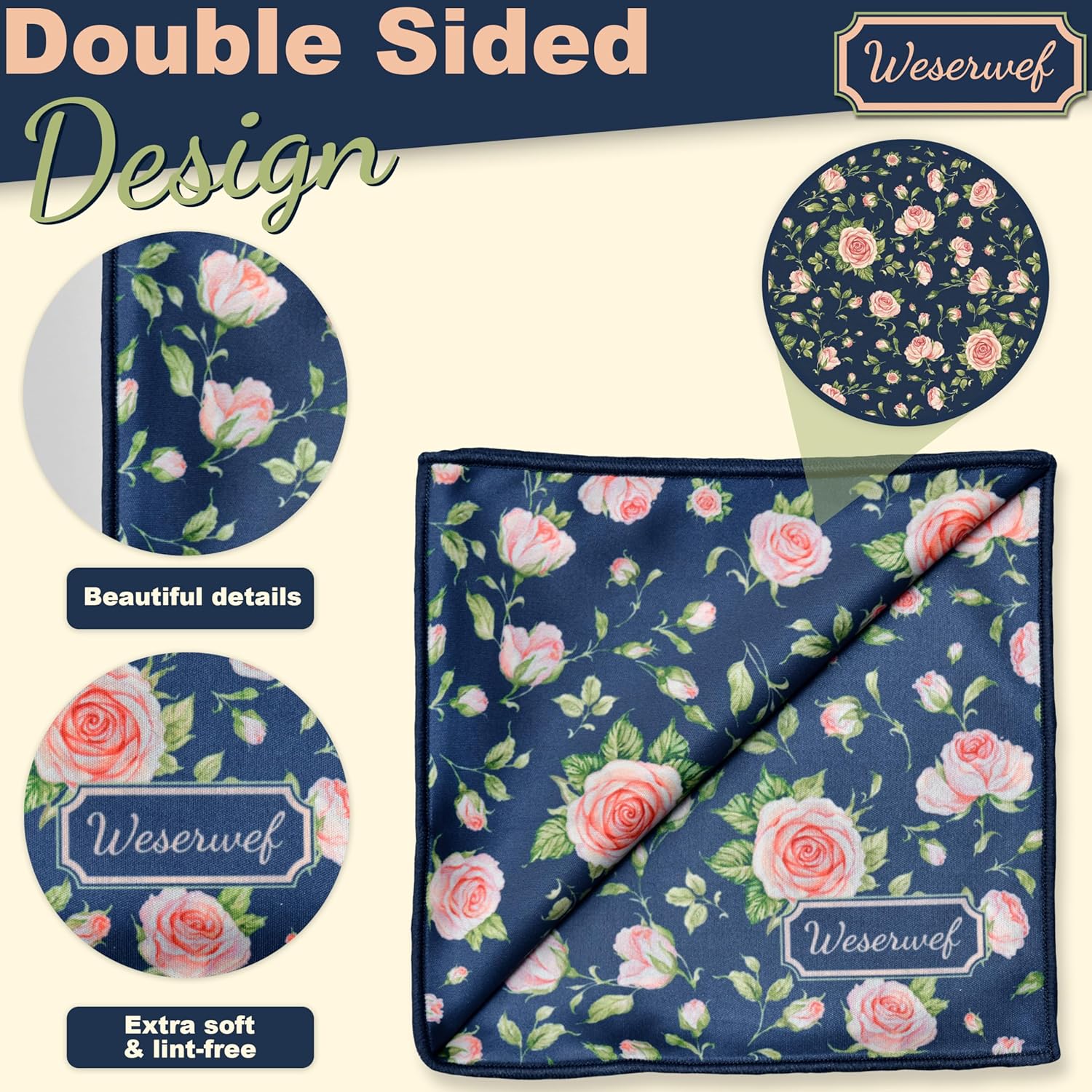 WESERWEF Design Microfiber Glasses Cleaning Cloth – Premium Cleaning Cloth for Eyeglasses, Screens, Tablets, Cameras & Lenses, 12" x 12", Ultra-Soft & Scratch-Free (Rose)
