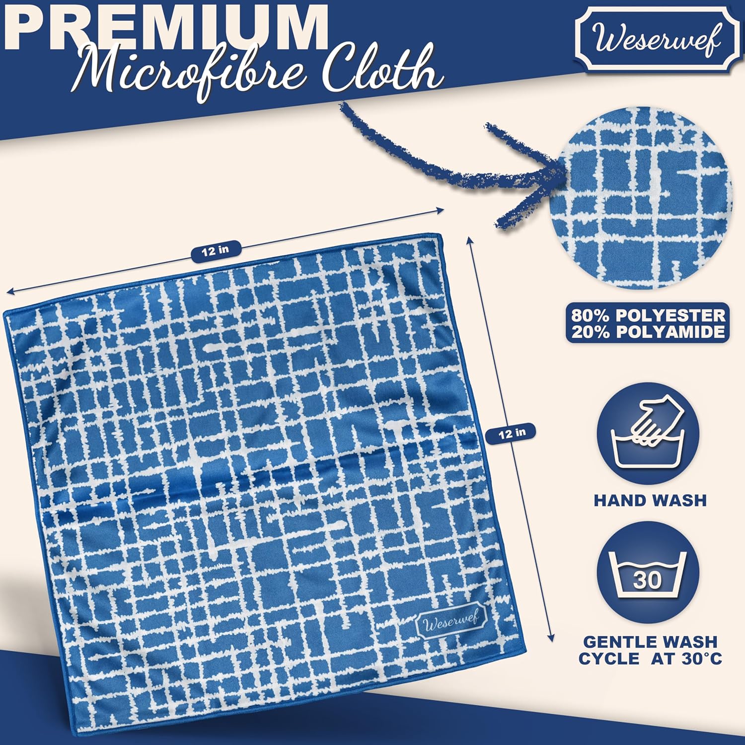 WESERWEF Design Microfiber Glasses Cleaning Cloth – Premium Cleaning Cloth for Eyeglasses, Screens, Tablets, Cameras & Lenses, 12" x 12", Ultra-Soft & Scratch-Free (Blue)