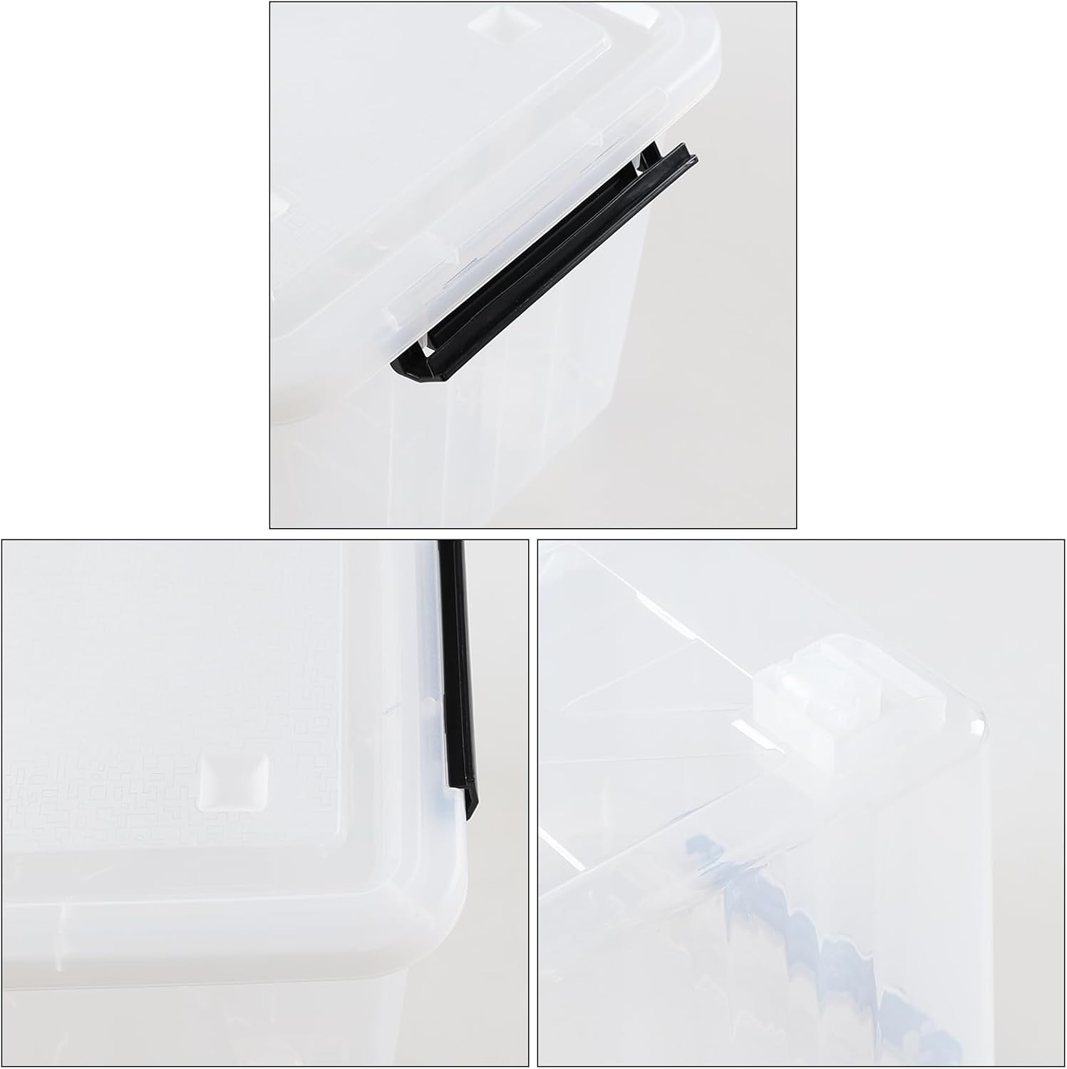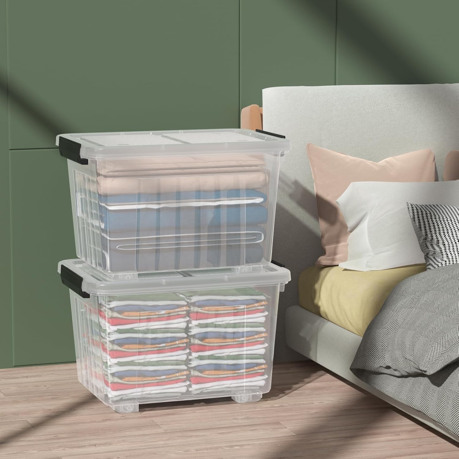 30 Quart Plastic Clear Storage Bin with Wheels, Plastic Latching Bins with Lids, 4 Packs