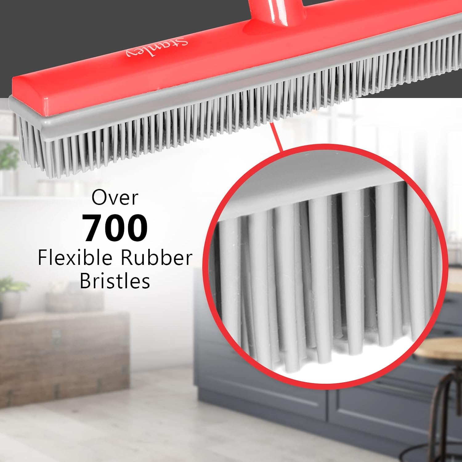 • OVER 700 FLEXIBLE RUBBER BRISTLES: Our Stanley Rubber Broom contains over 700 flexible rubber bristles to thoroughly grab, hold and remove hair, fuzz and lint (when PULLED toward you). These rubber bristles are completely washable with mild soap and water.