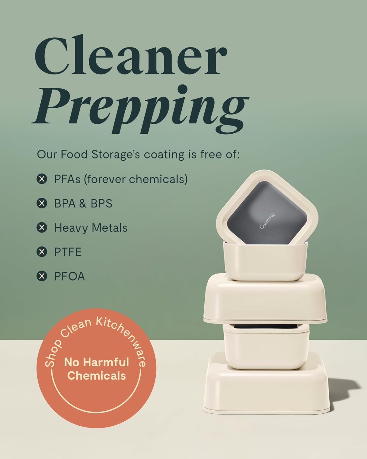 • KEEP YOUR FOOD FRESH: Look forward to leftovers with Caraway’s easy-to-store, non-toxic food storage containers. This 14 piece set looks great and most importantly keeps your food extra fresh and organized.
