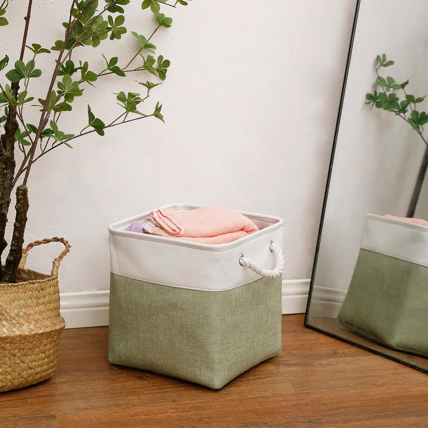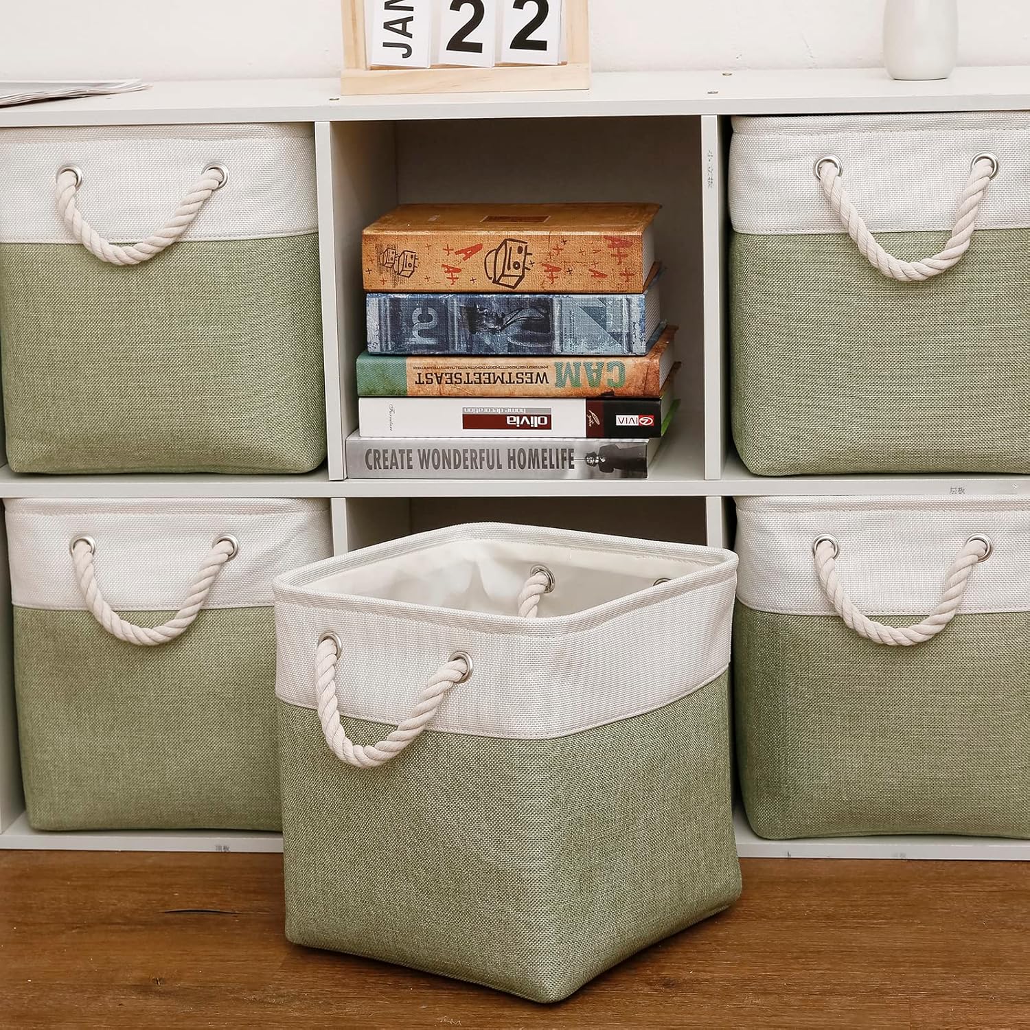 - Durable Cube Storage Organizer Solution: Experience the right organization with our 6-pack cube storage organizer bins, designed to provide an exceptional storage solution for any space. These fabric storage cubes, available in white-gray bins and white-green bins, are perfect for use with your 6 cube storage organizer, effortlessly blending style and functionality. Our cube storage bins 11 x 11 inch offer enough storage capacity, making them ideal for all your belongings.