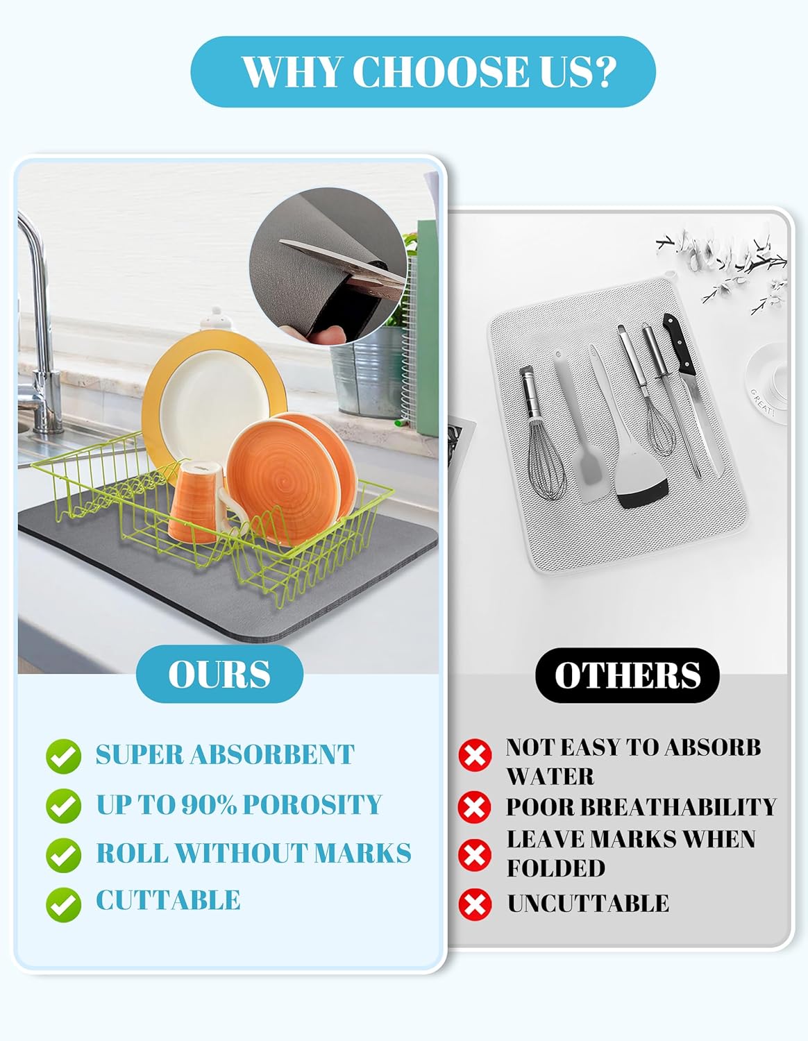 • DISH DRYING MAT: The drying mat is soft and absorbent, Always keep countertops clean and tidy. A practical kitchen mat accessory is definitely worth choosing.