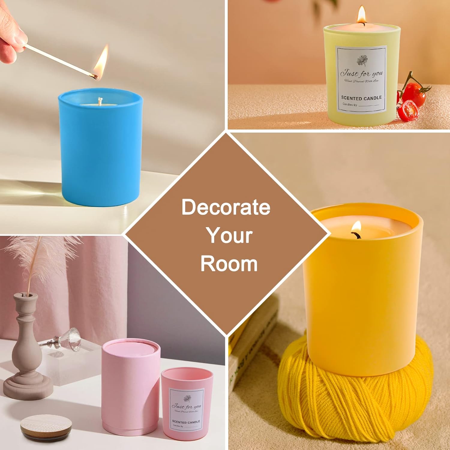 • Buy it and you will get: 15 pack glass candle jar that contain 3pcs pink candle jars 3pcs blue 3pcs ivory yellow work and 3 pcs orange &3 pcs white jars for your handmade candle work. Also you will get 24 candle making labels. A Great Value Buy!