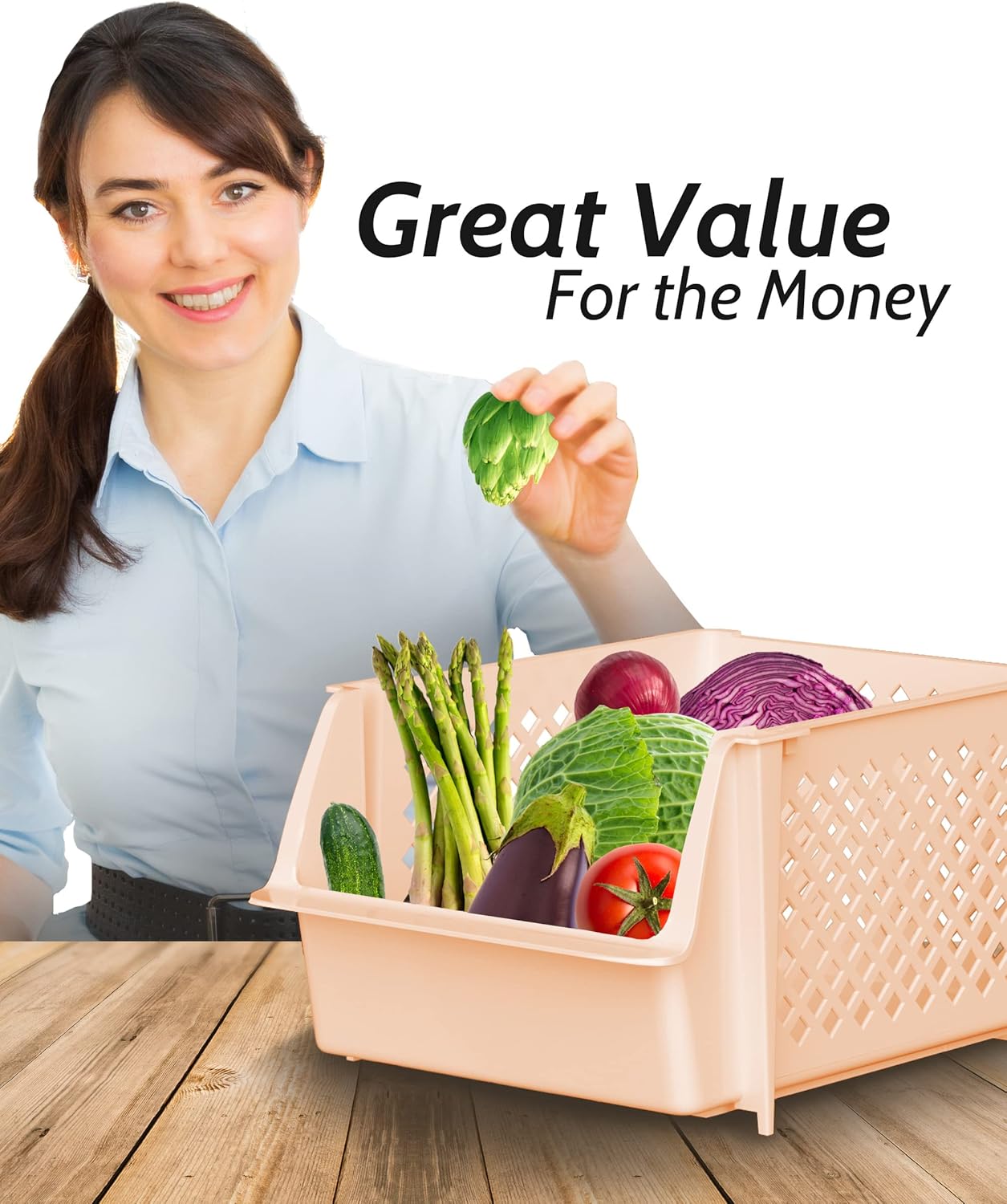 Skywin Plastic Stackable Storage Bins for Pantry - 2 Pack Stackable Bins For Organizing Food, Kitchen, and Bathroom Essentials (Cream)