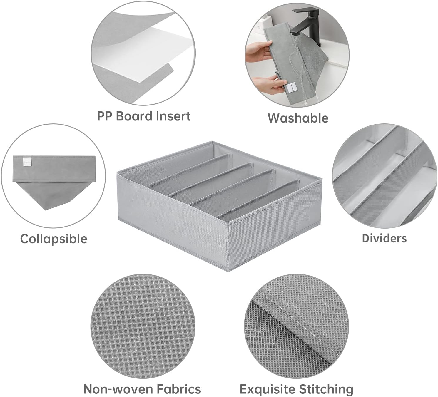 - 【5 Grids Divider】Each wardrobe organizer is divided into 5 separate grids, one grid, and one item, which can keep your clothes and closet neat and tidy and easy to pick and place in a short time. Plus, the foldable and stackable design can greatly improve the utilization of wardrobe space.