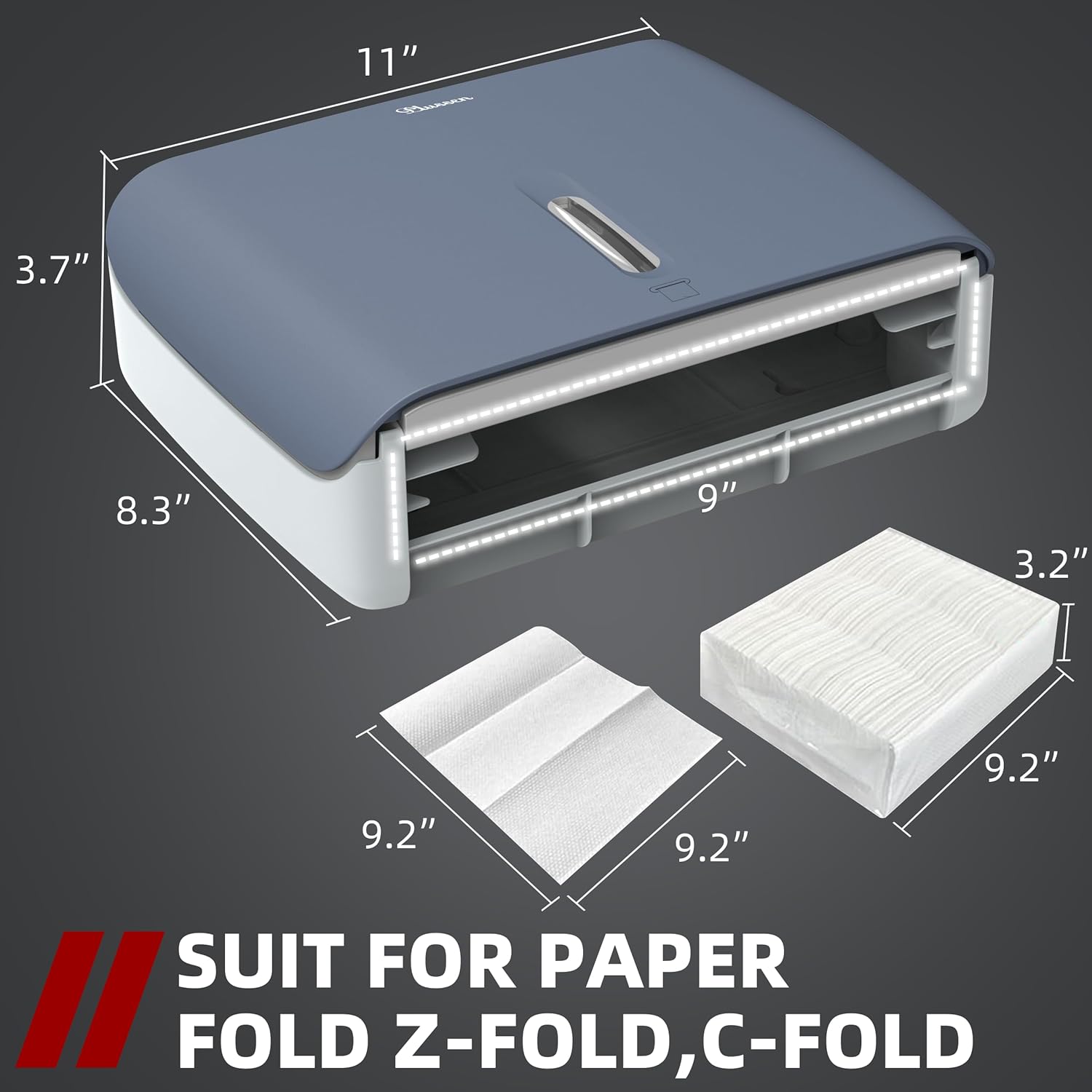 Paper Towel Dispenser Wall Mount,Capacity 200+ Sheets ZFold Tri Fold Blue Adhesive No Drilling or Screws Installation for Home Toilet