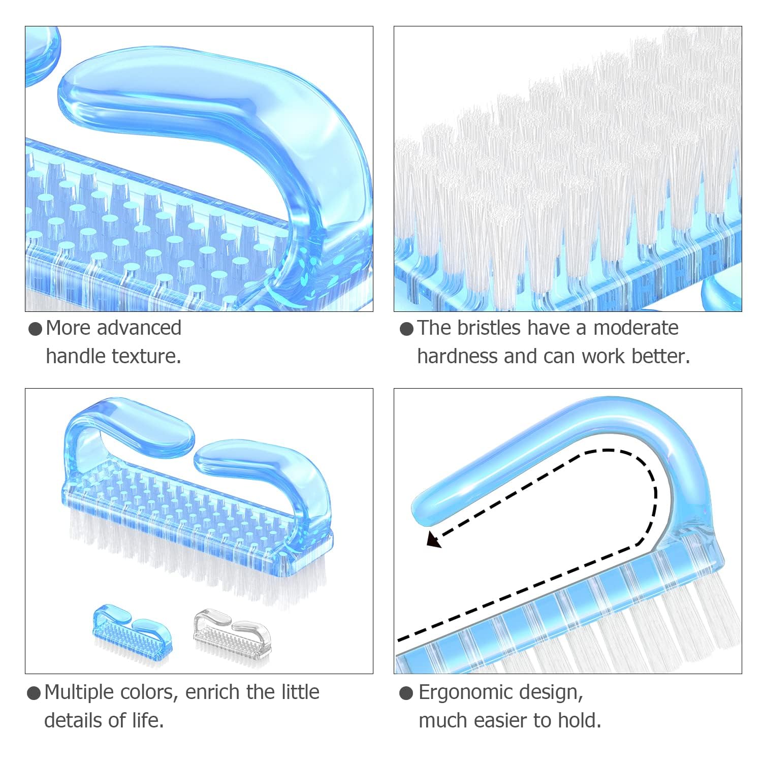 • 【High Quality Material】: These nail brushes' handles are made of sturdy plastic which are not easy to bent. The bristles are made of flexible plastic, not too hard and not too soft which won't scratch your skin. Sturdy for long-term to use.