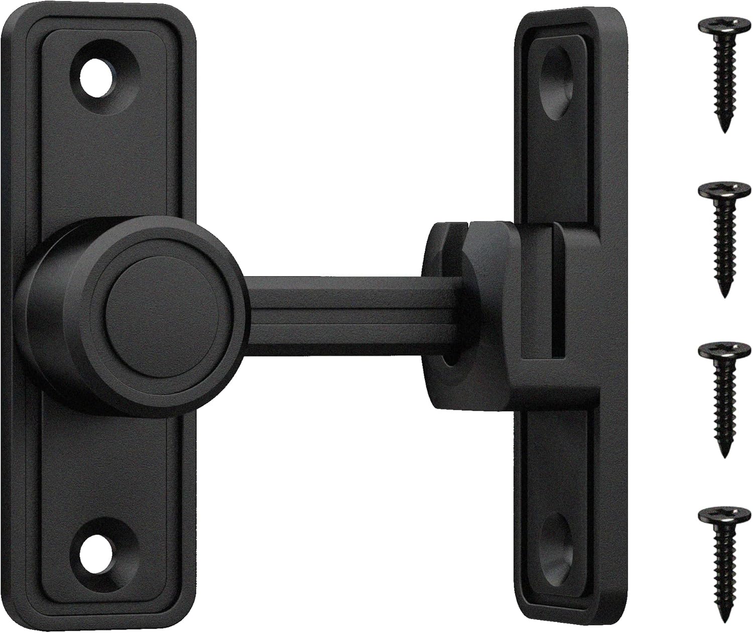 Barn Door Privacy Latch, 90°/180° Swing Slide Lock, Zinc-Alloy, Adhesive or Screw Mount, Interior Use for Bathroom/Bedroom/Closet/Shed, Includes Screws & Glue - Black