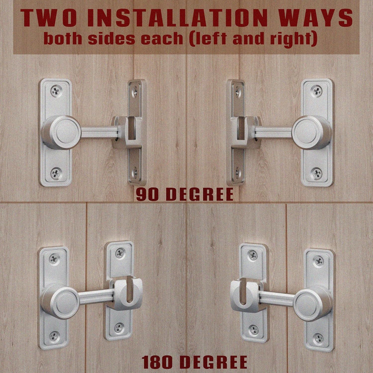 • Safety First: This door safety lock features a simple but effective locking mechanism. The latch can’t be opened from the other side of the door, protecting your privacy from unwanted guests or people breaking in and making you feel safe at all times.