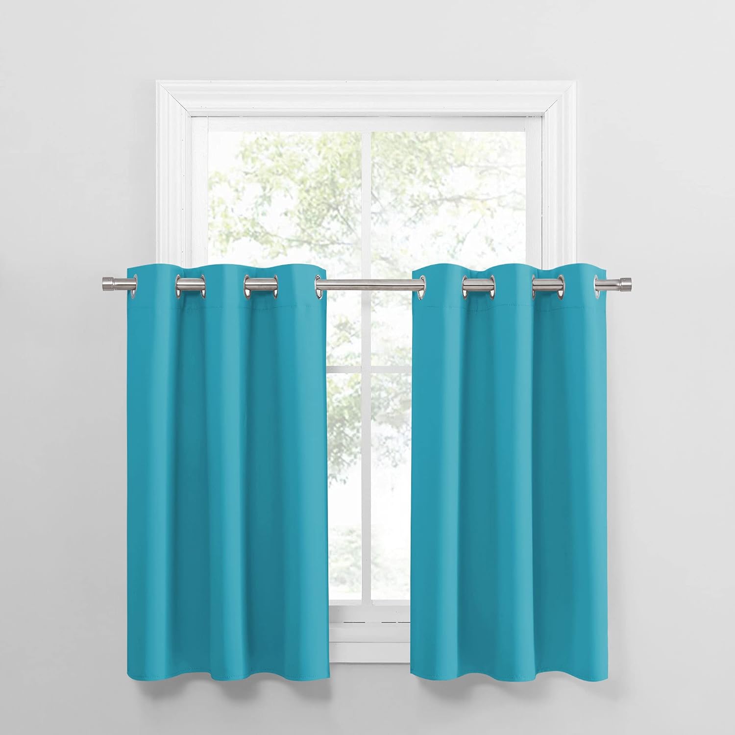 PONY DANCE Bathroom Window Valances - (34 by 36 inches, Blue Mist, 2 Panels) Room Darkening Tier Curtains Short Panels Drapes for Small Half Window Decoration in Kitchen