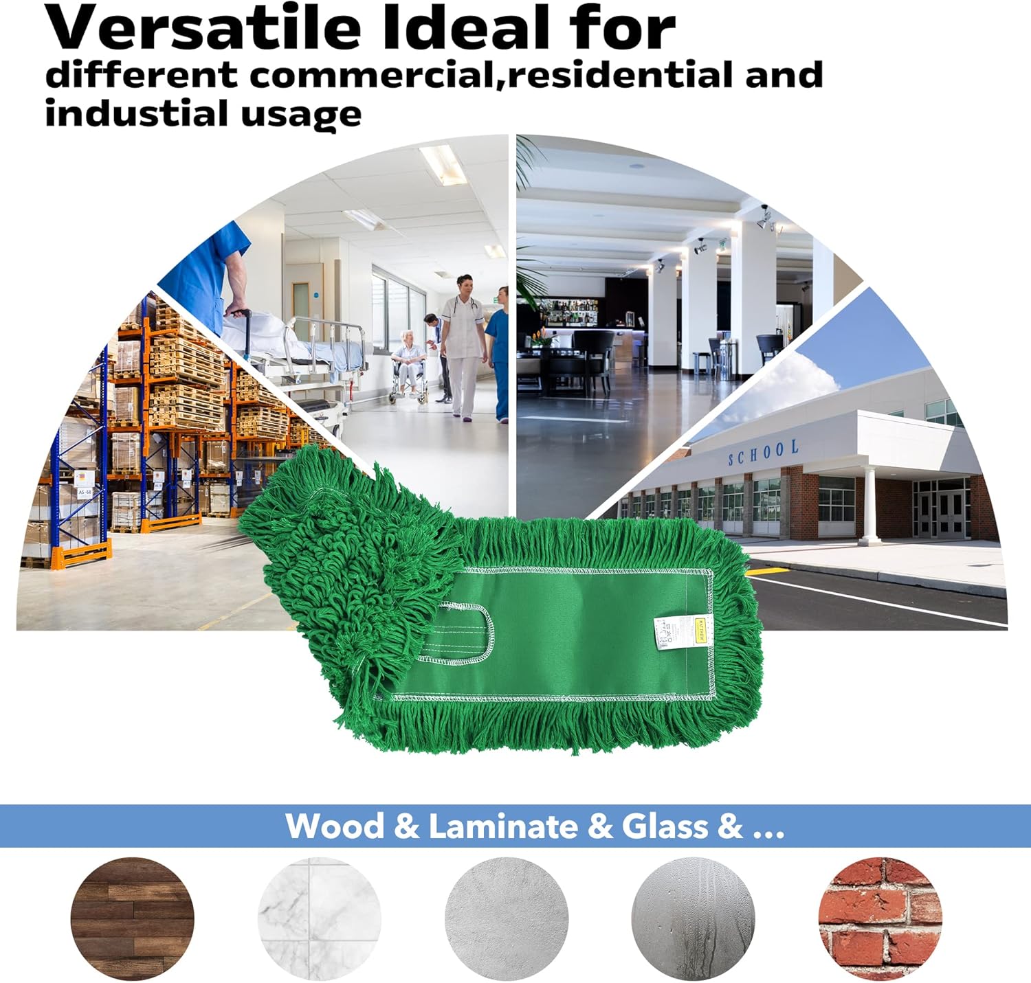 • Cotton refills mop pad is ideal for industrial class floor cleaning & Commercial & Residential large area , perfect for all types of surface areas including office floors, shopping mall floor ,hospital floor ,restaurant floors, garages, warehouses, hard wooden floor , Laminate ,marble floors, tile floors, cement floors, ect