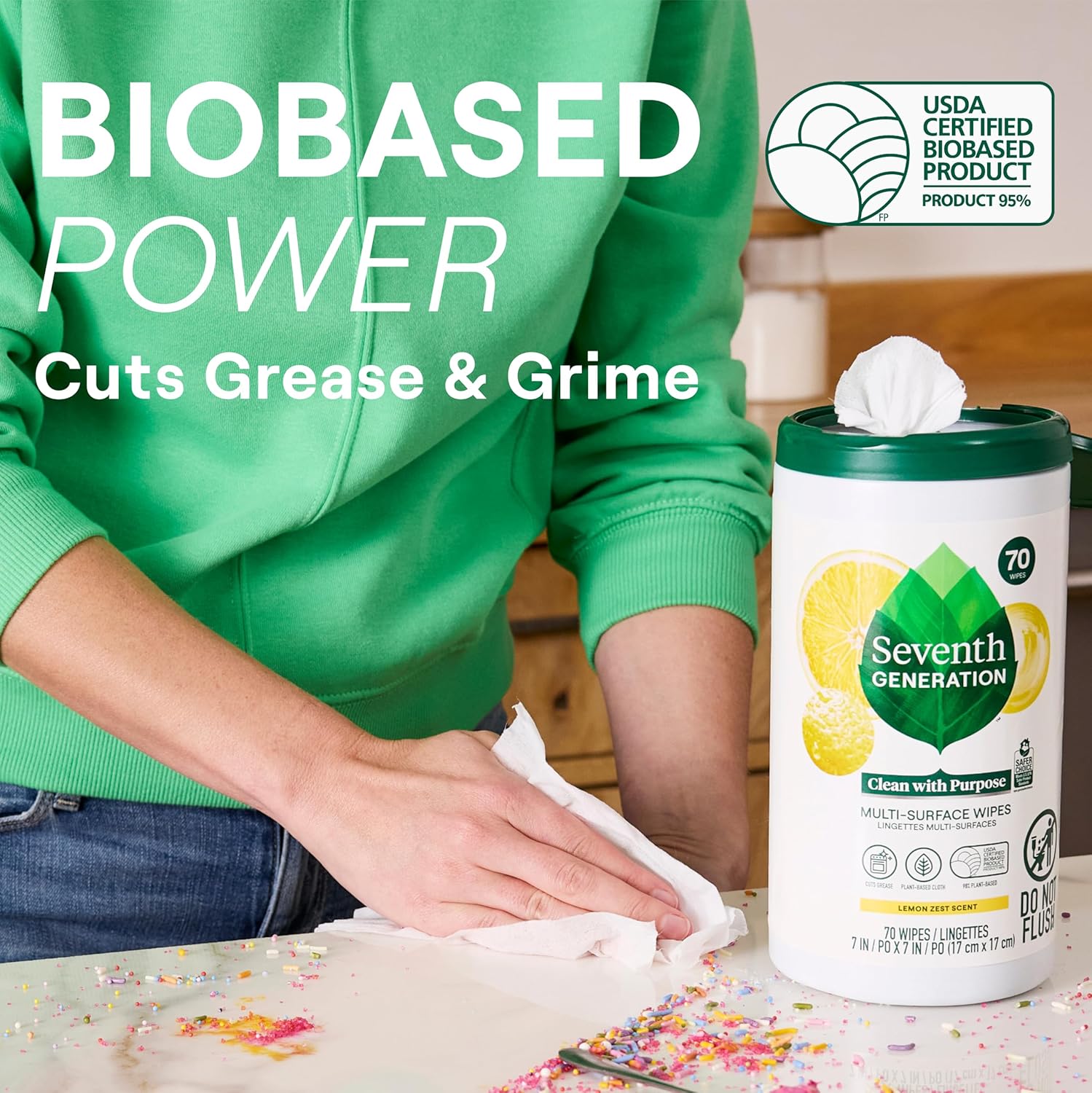 • Seventh Generation multi purpose cleaner wipes that work on most home surfaces