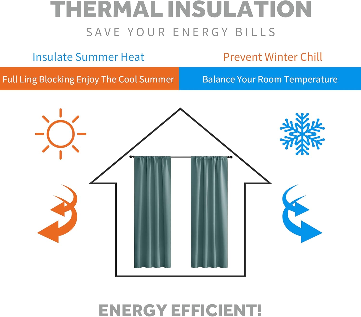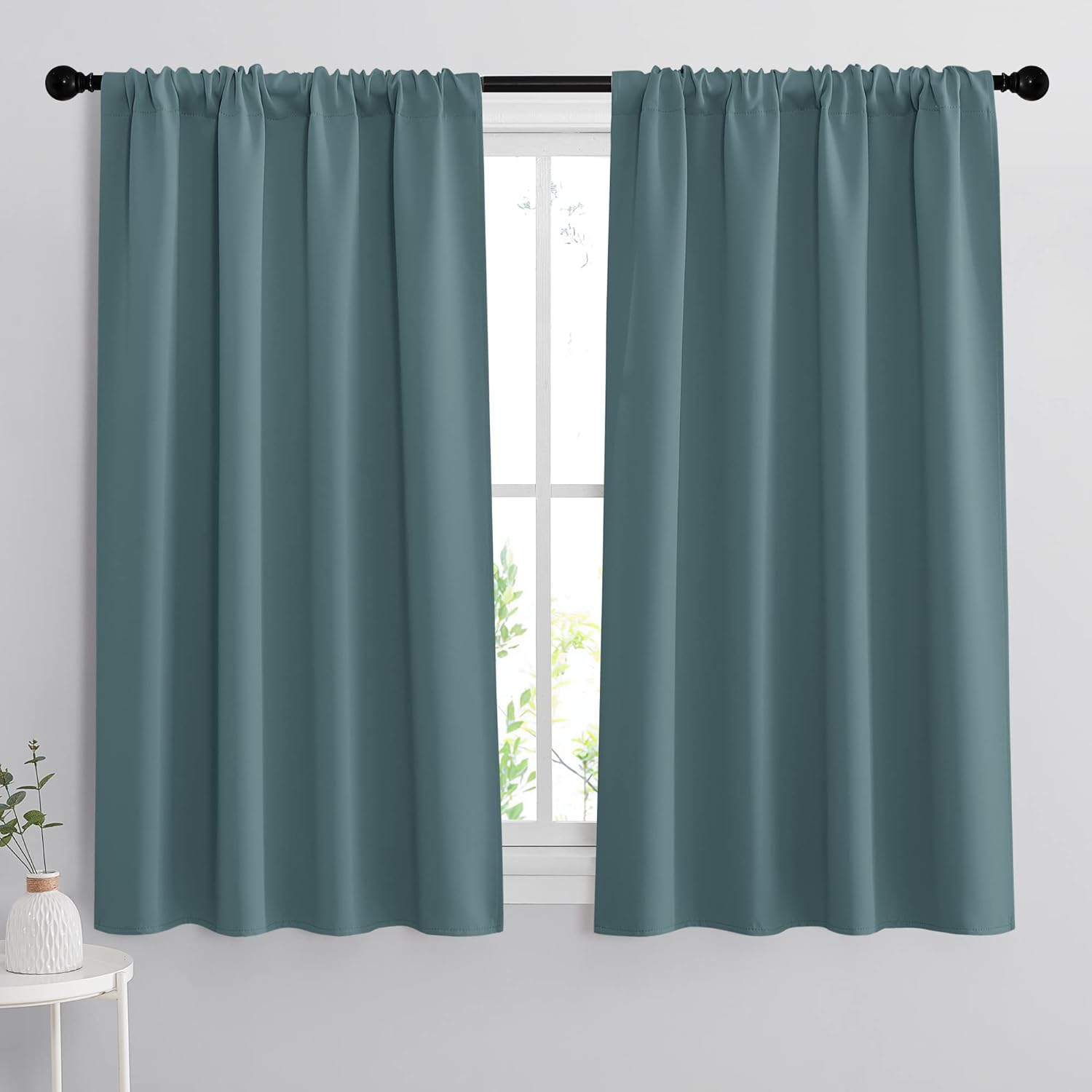 RYB HOME Blackout Curtains for Bedroom, Privecy Thermal Insulating Energy Saving Window Curtains for Bathroom Kitchen Kids Nursery, Wide 42 x Long 45, Teal Blue, 2 Panels