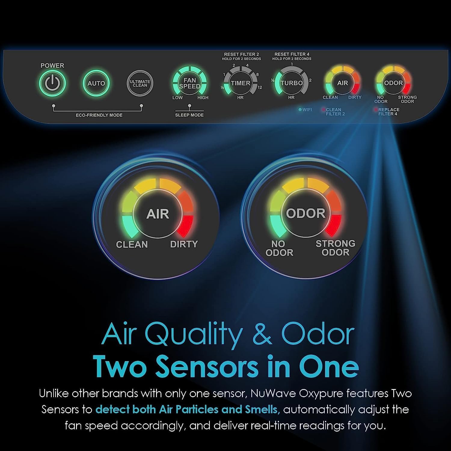Nuwave Oxypure Ultra Clean Air Purifiers for Extra Large Room, Office, 5 Stage Filtration System with 4 Extra HEPA/Carbon Filters, Remove 100% of Dust, Pet Dander, Odors, Pollen, VOCs (Renewed)