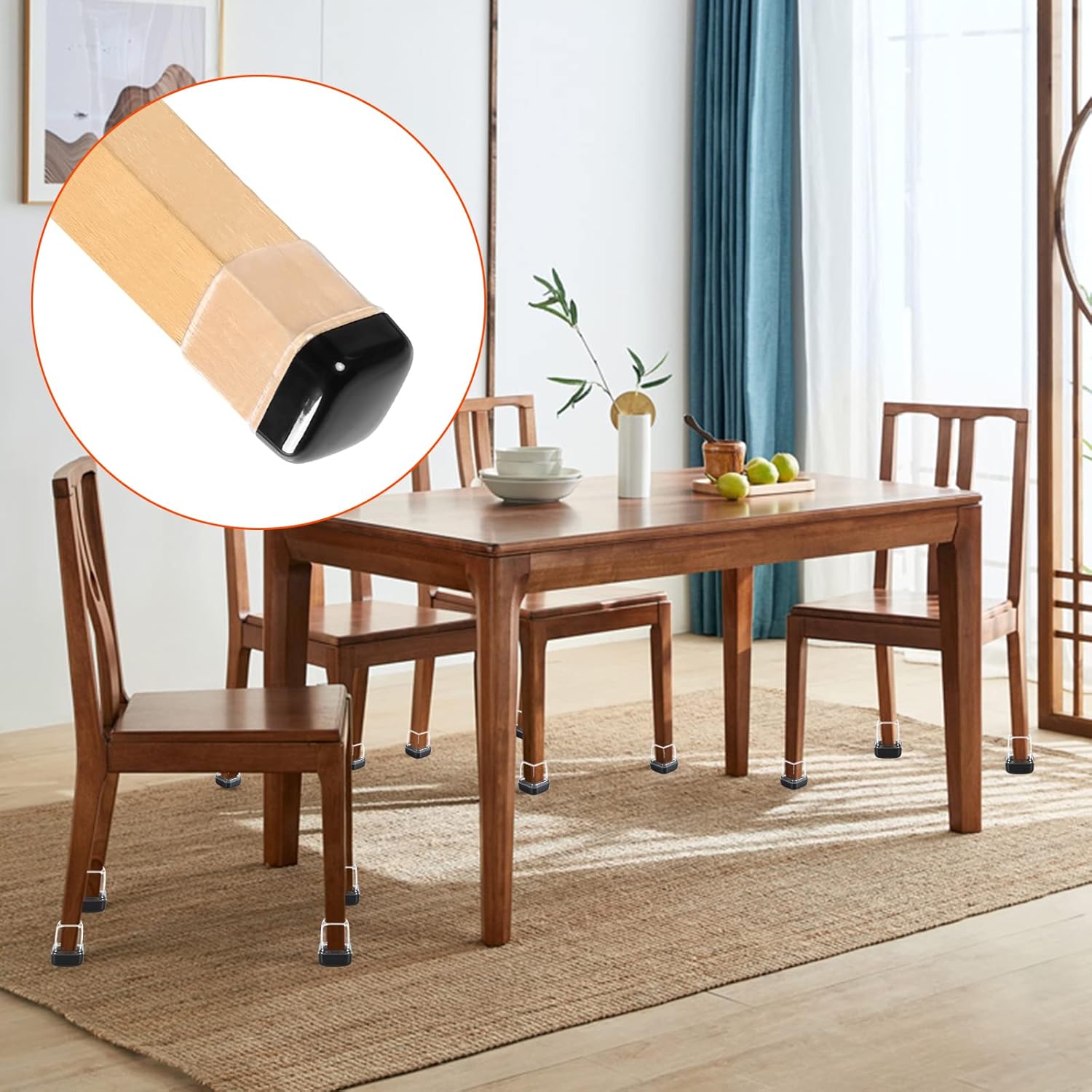 • ☛【Easy To Install & Reusable】- Just simply stretch and put them on. Table leg protectors for hardwood floor are easy to install for anyone who has some grip strength. Chair Feet Protectors Caps for carpet is easy to clean, It can be reused.