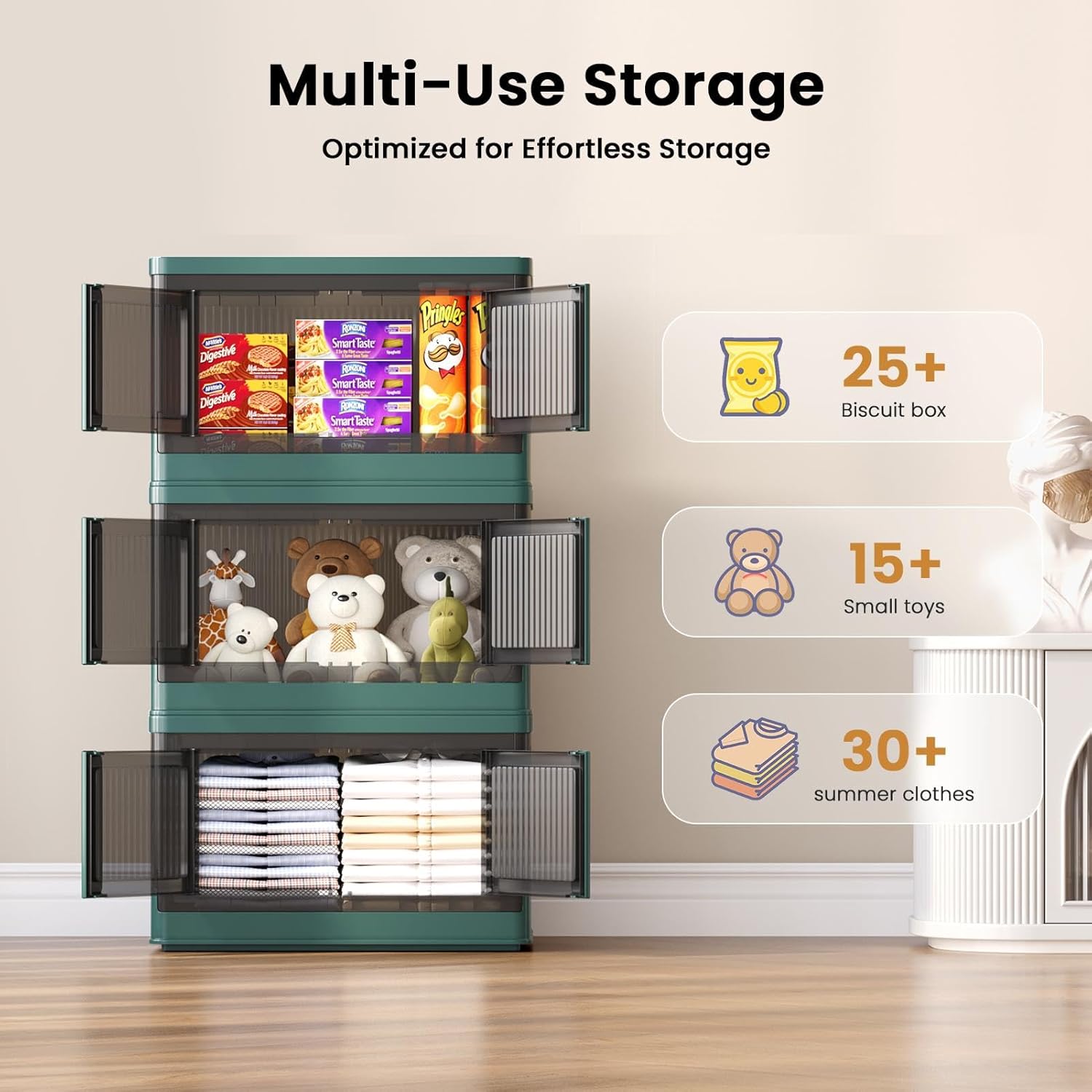 • Quick Access & Security: Clear doors let you see contents instantly, open-front design allows effortless item retrieval. Additionally, the built-in lock clasp prevents accidental opening during transport