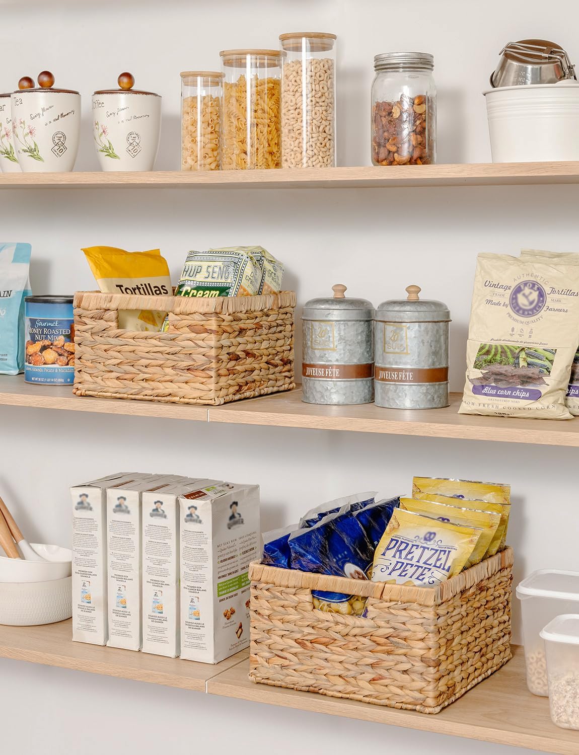 • Handwoven Craftsmanship: Handwoven by skilled artisans with tight, even braiding, each pantry basket offers a neat, elegant look that showcases its high-quality craftsmanship.
