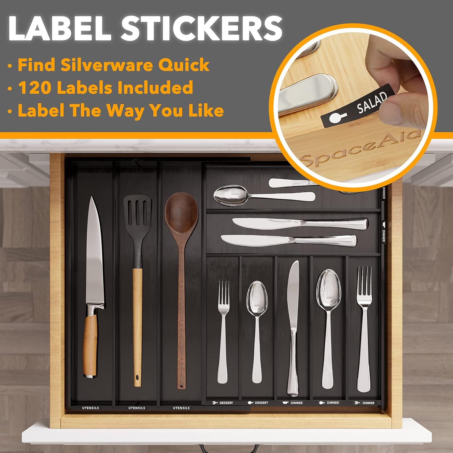 • 80 LABEL STICKERS INCLUDED - Identify drawer contents instantly with the labels on the box; You can label the bamboo kitchen organizer clearly, or not use the labels to keep the clean look of the silverware holder