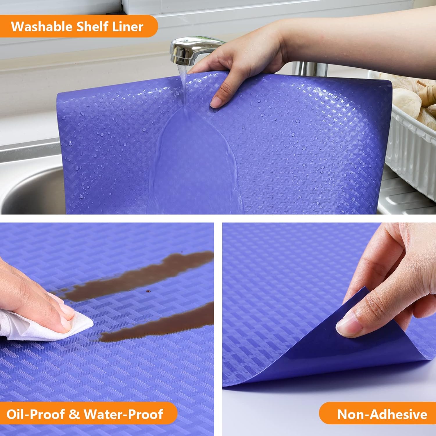• 💗【MULTIFUNCTIONAL LINER】 The shelf liners can not only be used as a kitchen liner to ensure the clean of the home, but also as a refrigerator mat to keep food and fruits fresh. Various Usage: Cabinet mat, drawer