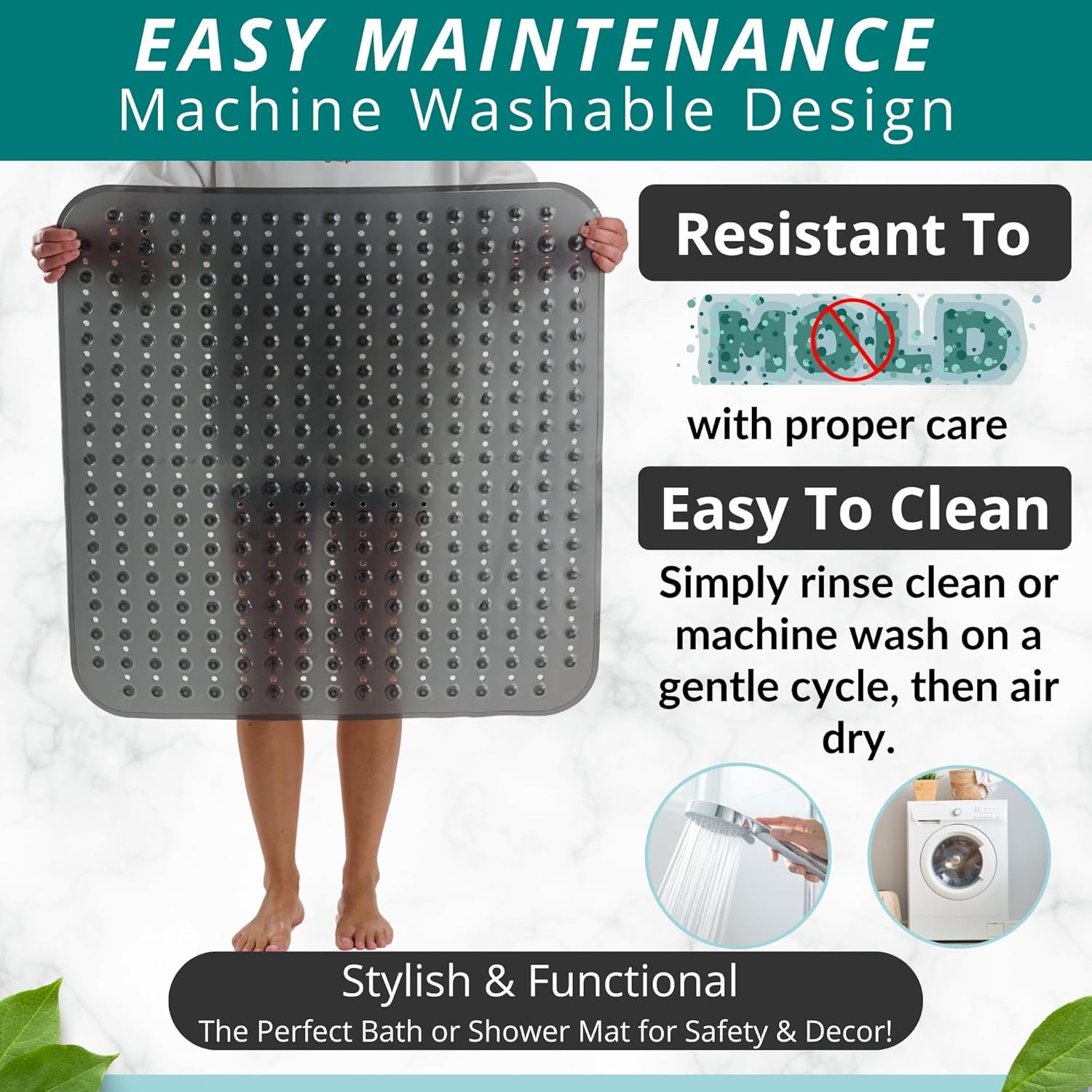 ENKOSI Extra Large Square Non Slip Shower Mat - 31 x 31-inch XL Bathroom Shower Mat - Square Shower Matts for Shower Stall Floors | Secure Suction Cups and Drain Holes (31x31 Charcoal)